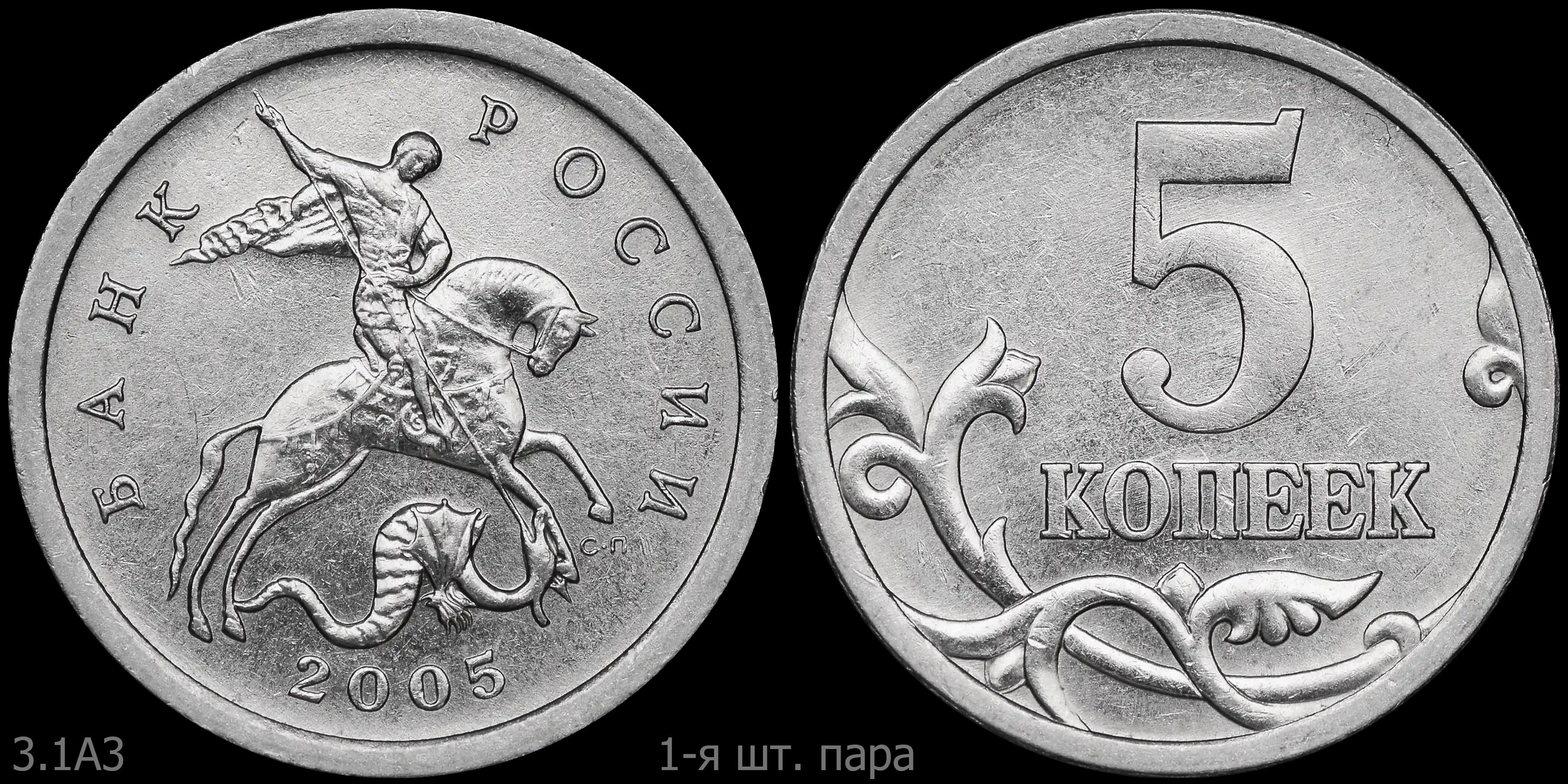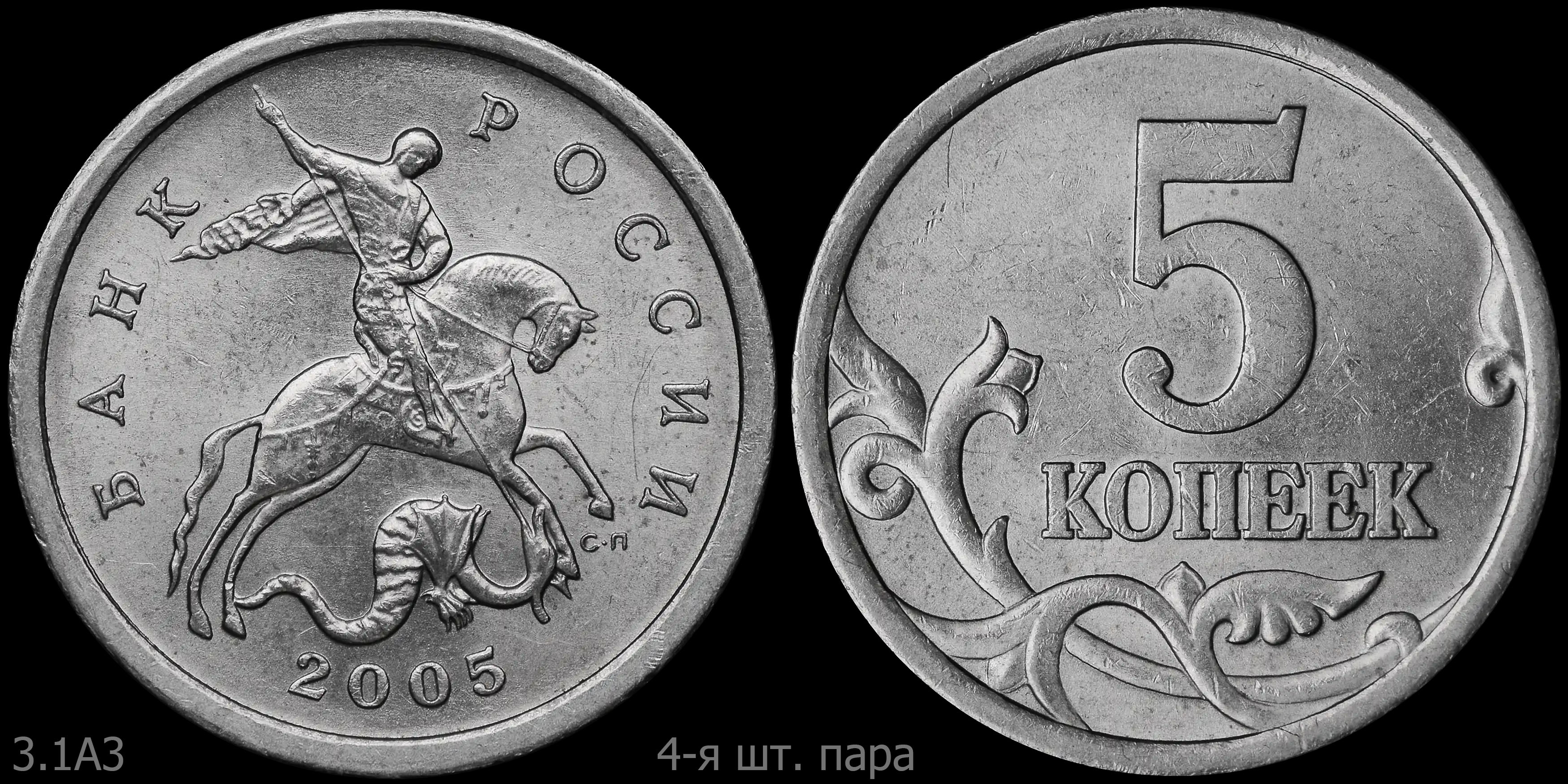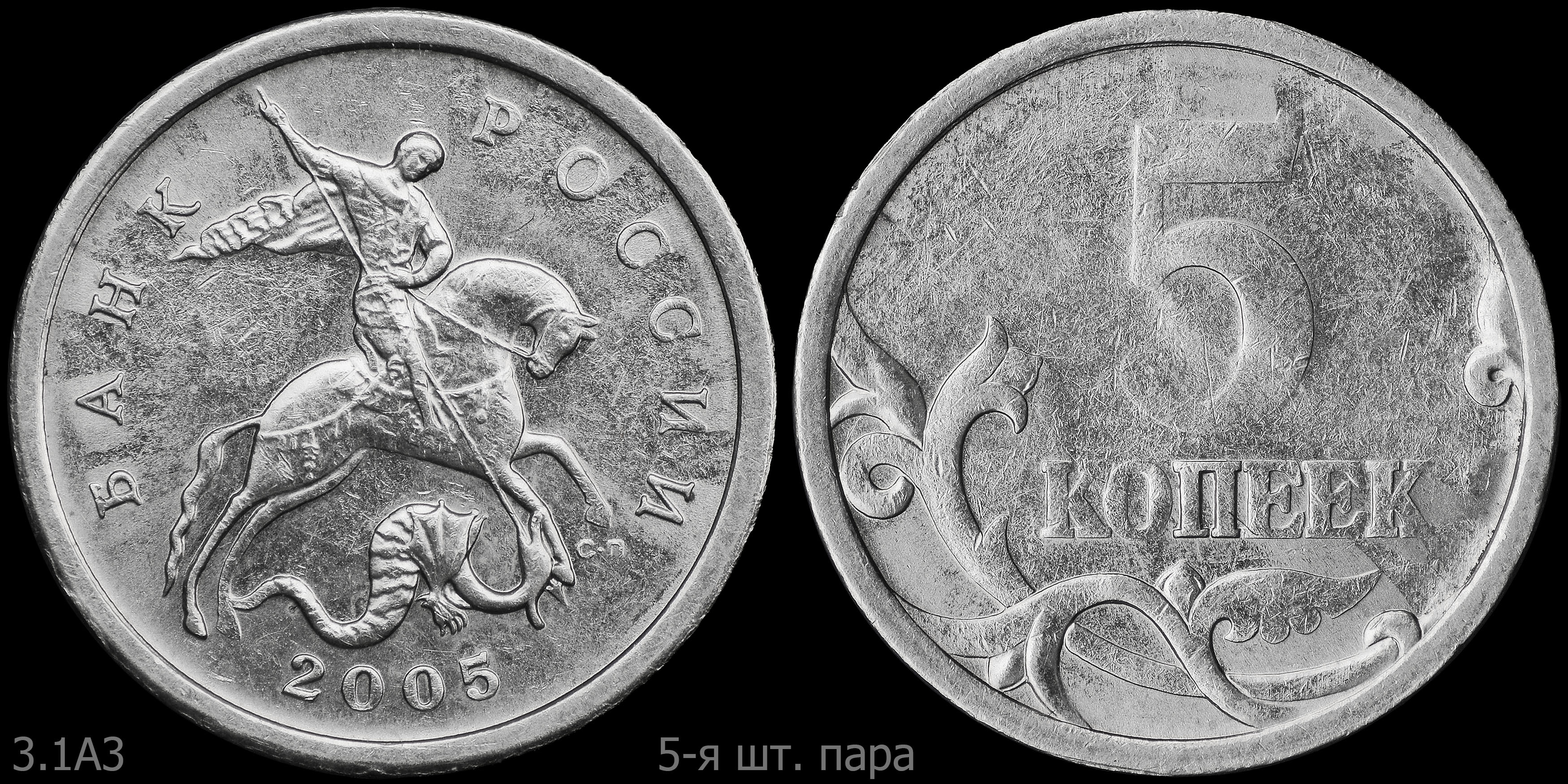 Ниже представлены штемпельные пары 5 копеек 2005 СПМД шт.3.1