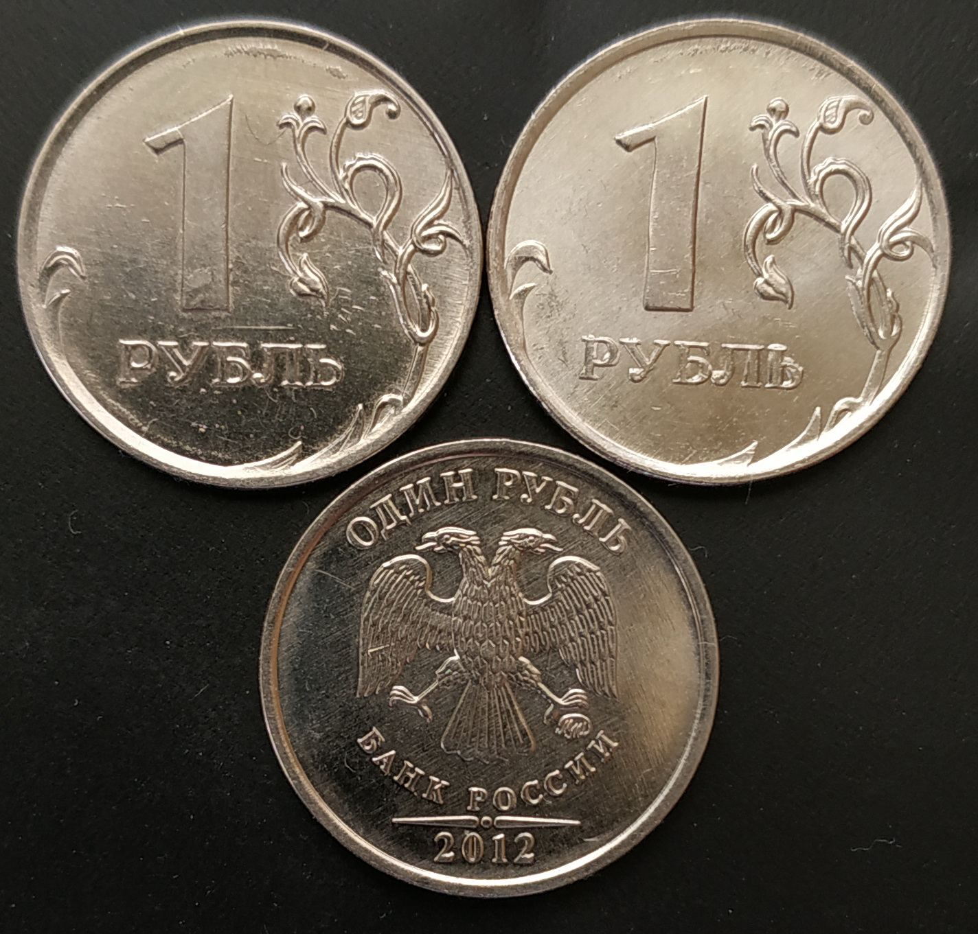 Попались две непохожие на 3.3 и 3.42 2012ммд рублёвые монеты. Предполагаю, что это реверс 3.11, т.к. буквы в надписи сближены.