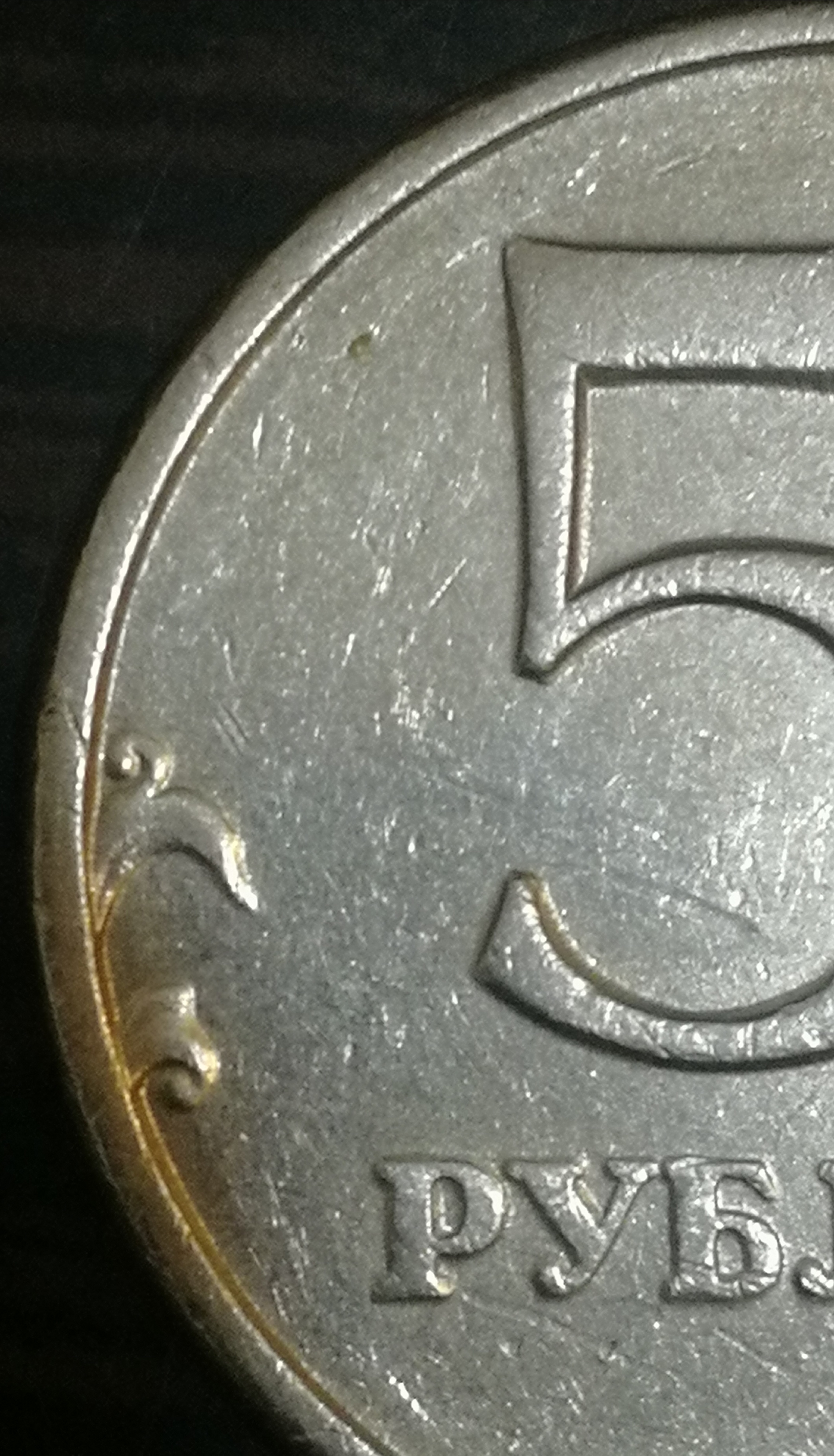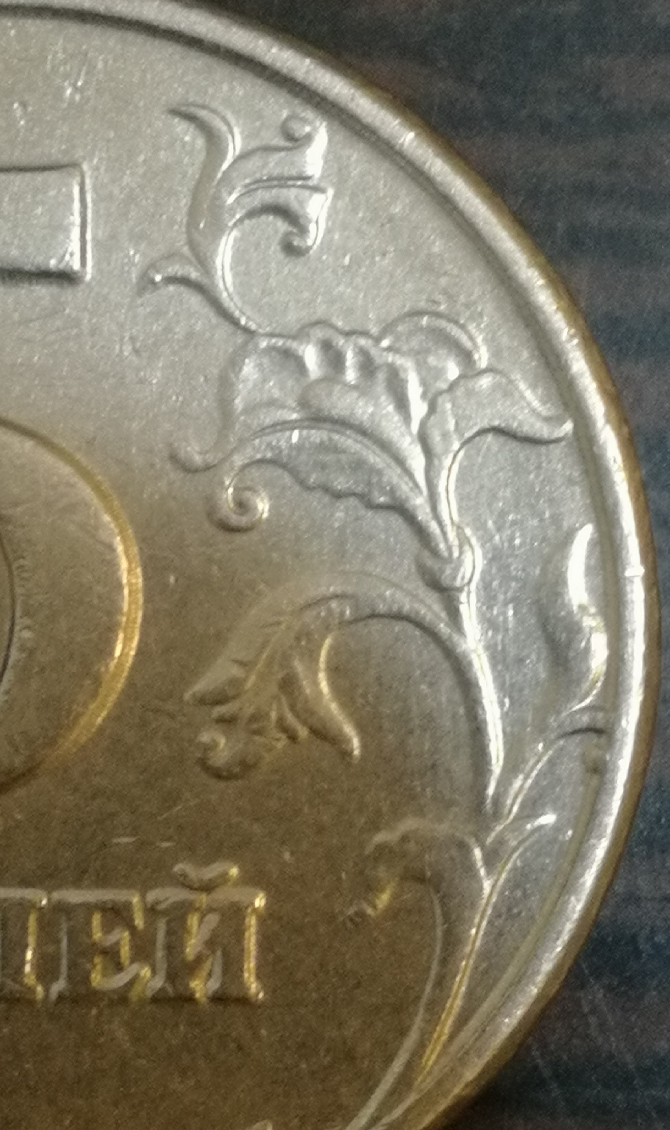 На обычной монете лист на 3 часа не касается канта, и на 9 часов завиток тоже не касается канта.
