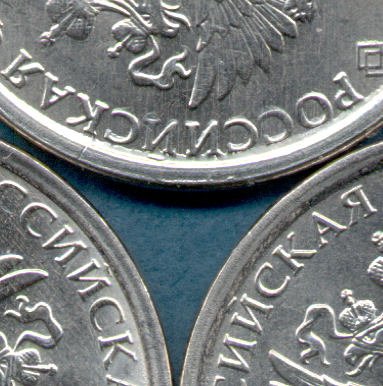 Ещё полгода назад Белый шум в посте https://www.escande.ru/forum/viewtopic.php?f=25&t=349 кратенько обмолвился о разнице в расстоянии надписей до канта, а я пропустил мимо ушей, упёрся в минтмарку. И сканы у него есть. Вот так "за деревьями - леса не видим". Это как 1 рубль 2014 года. Ближе-дальше. Типа того.