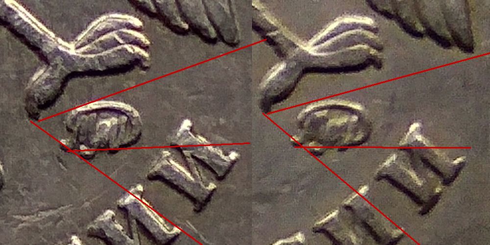 Здравствуйте, на Аверсе разное расположение монограммы.