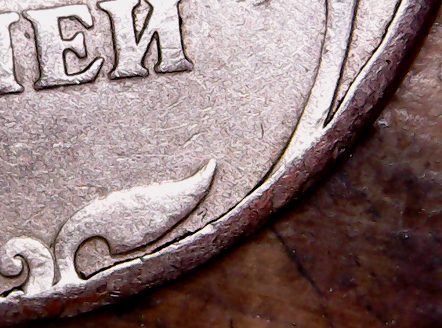 Совсем недавно обсуждалась аналогичная монета с расплющенным кантом, помониторьте форум.