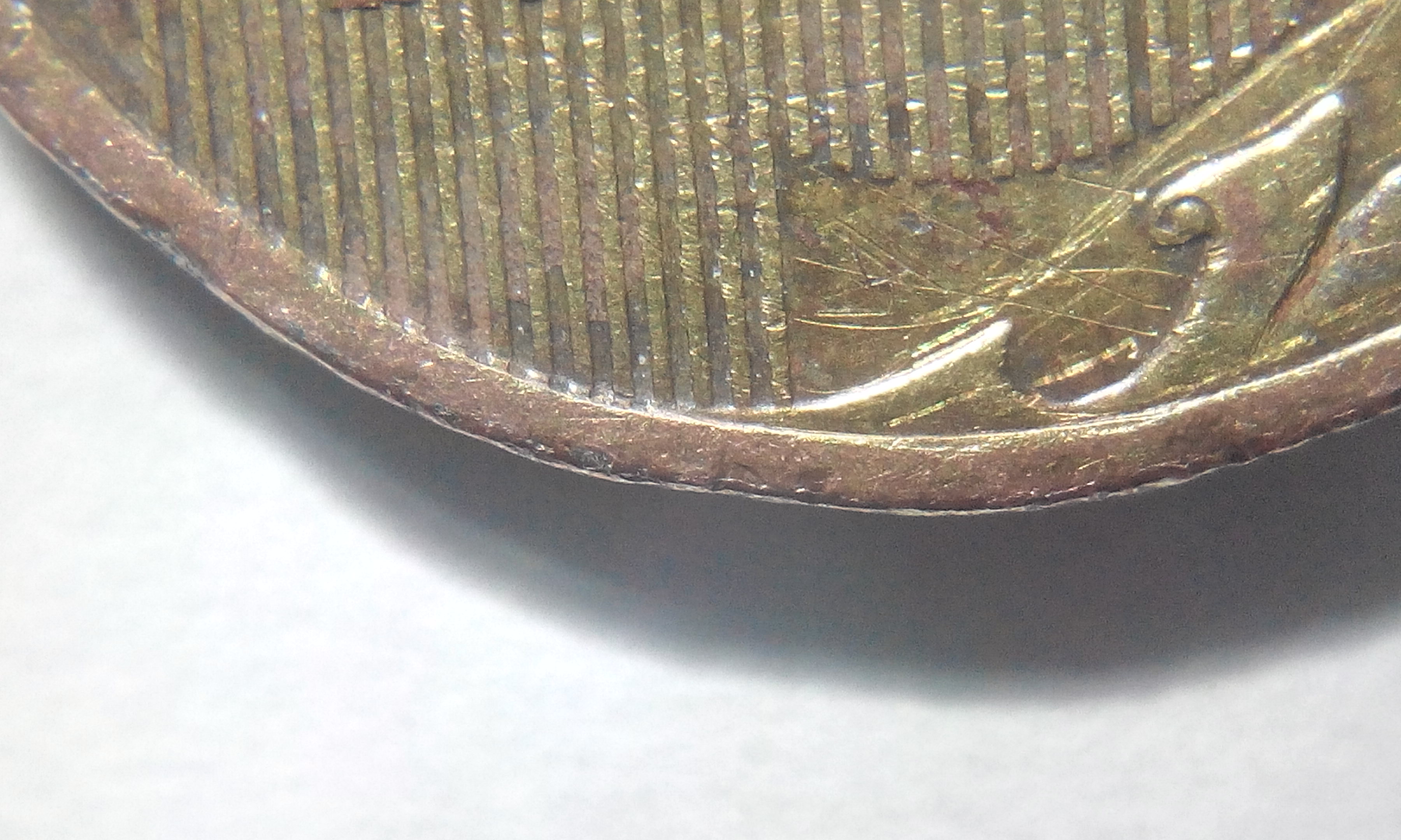 Попалась монета 10 рублей 2009 г., состояние плачевное, наверное сразу бы пустил в оборот, аверс А, но на всякий случай пригляделся к реверсу.