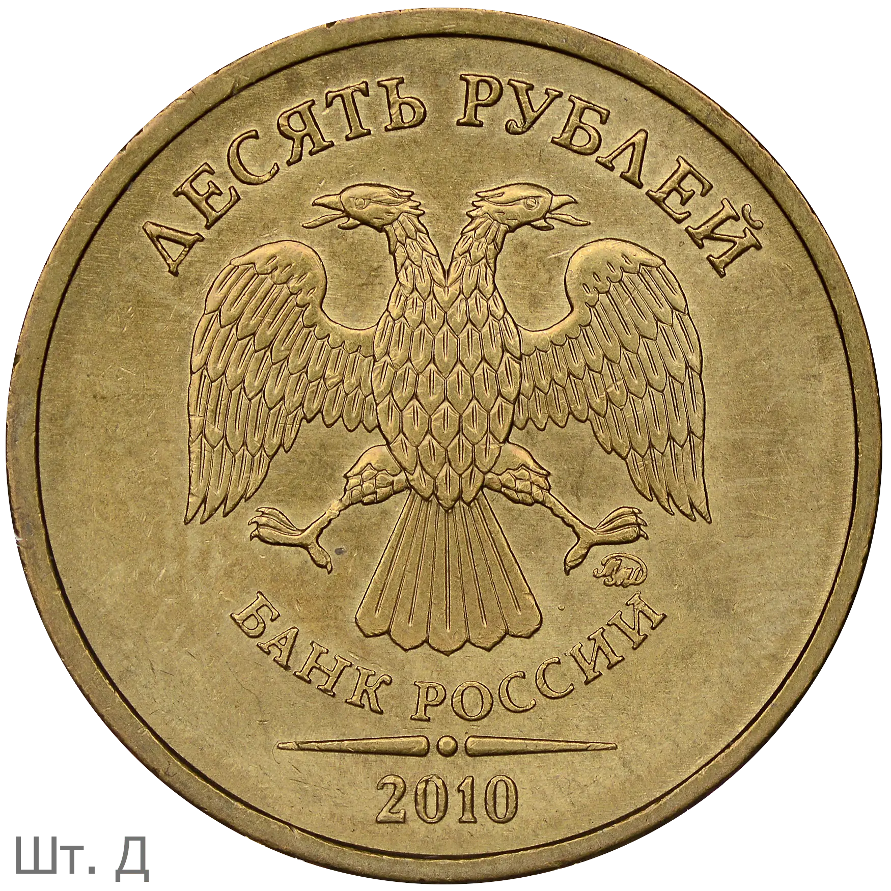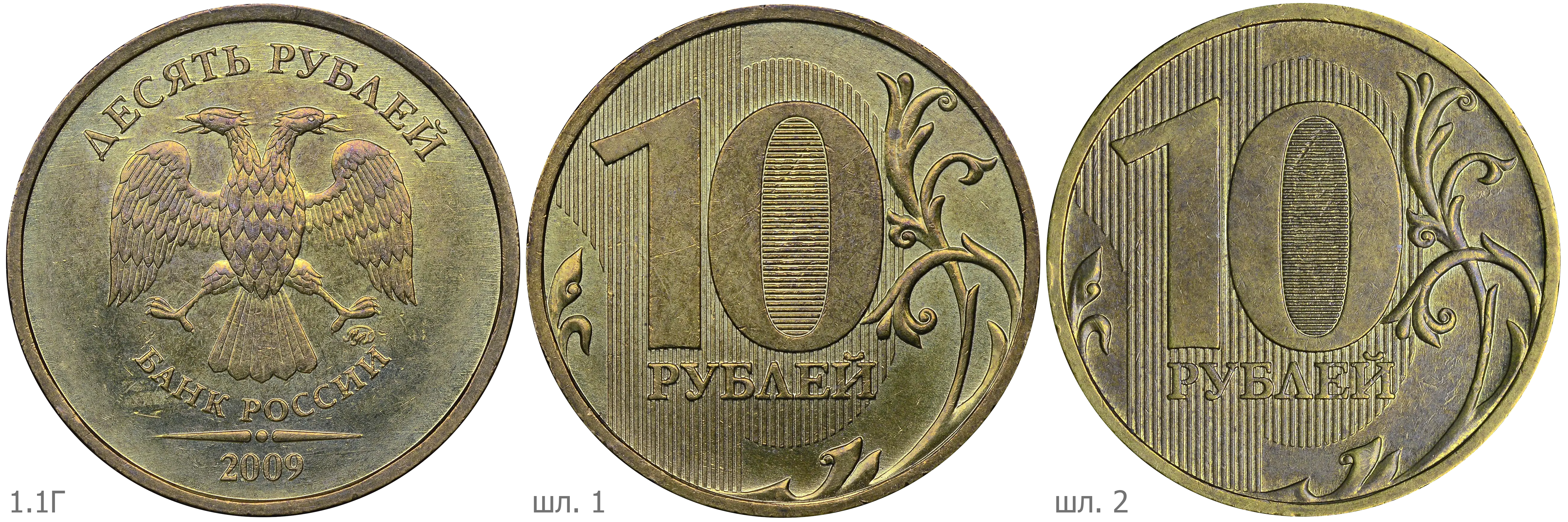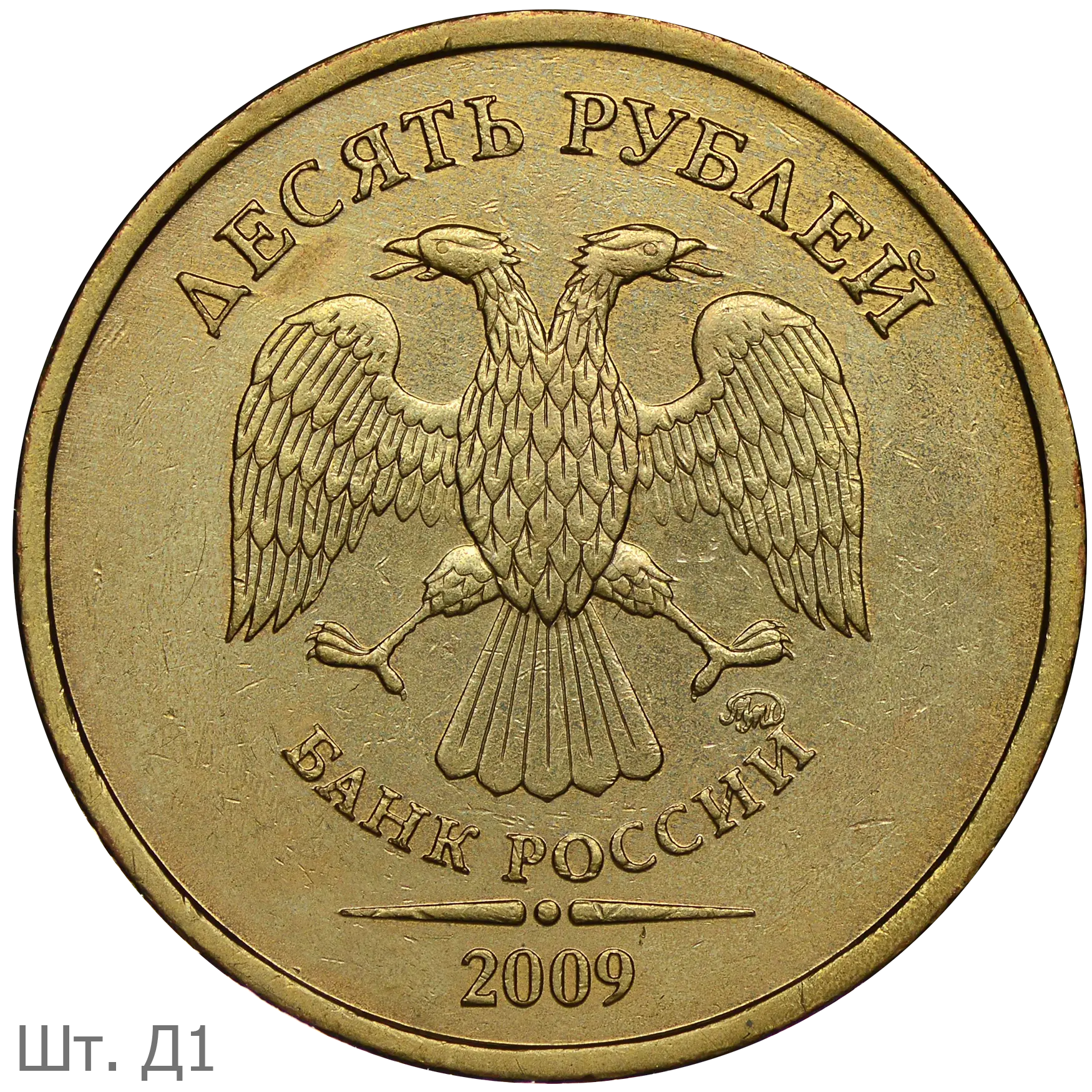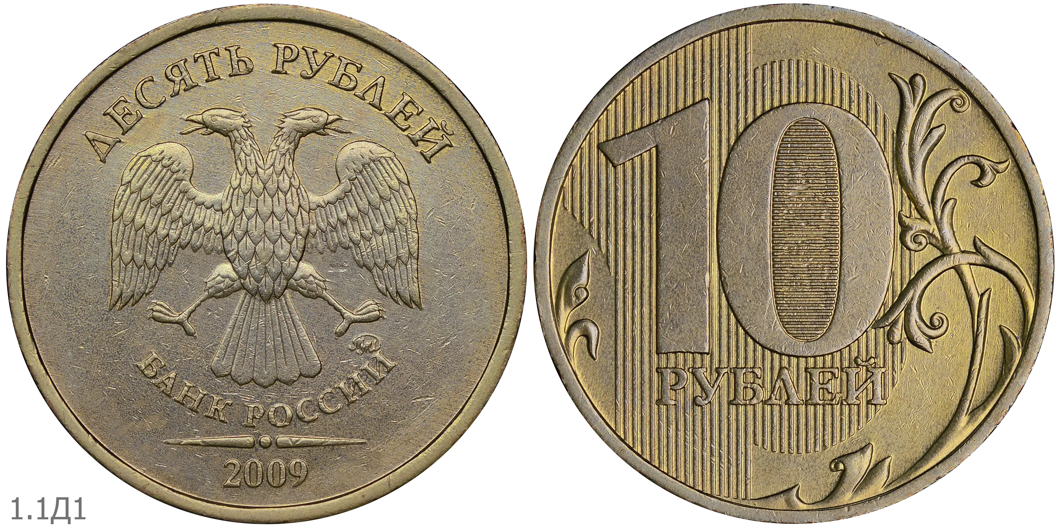 Монеты номиналом 10 рублей находятся в обращении с 1 октября 2009.