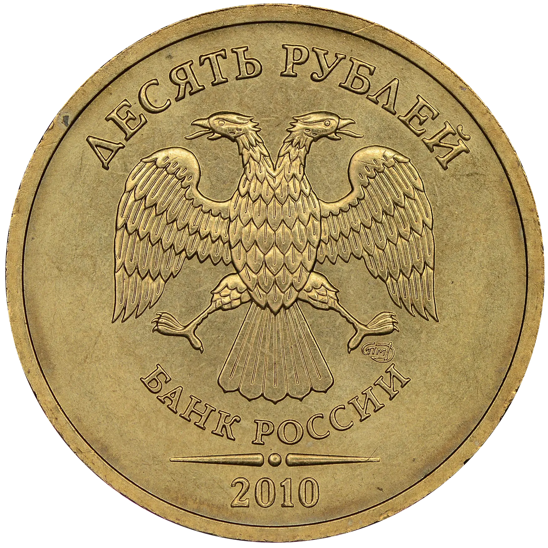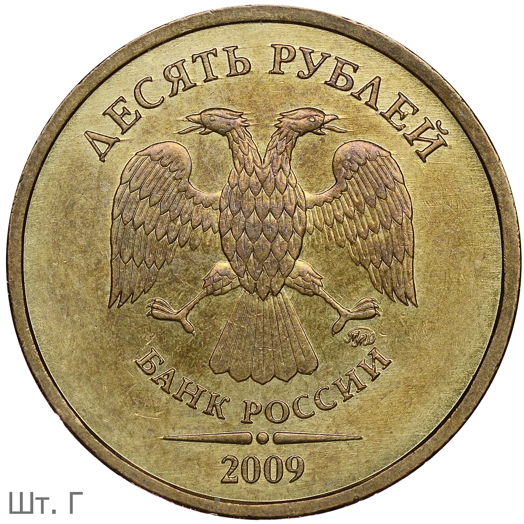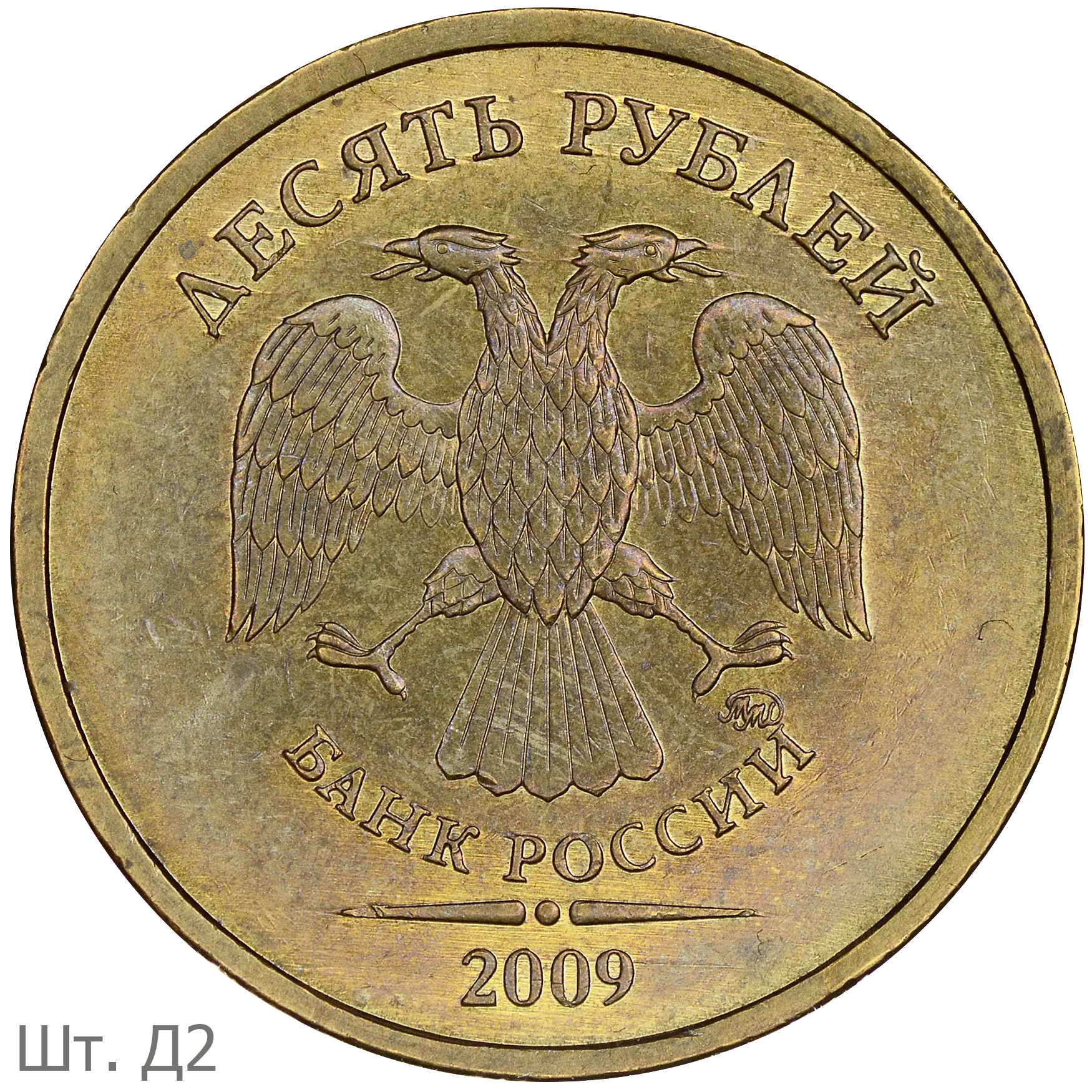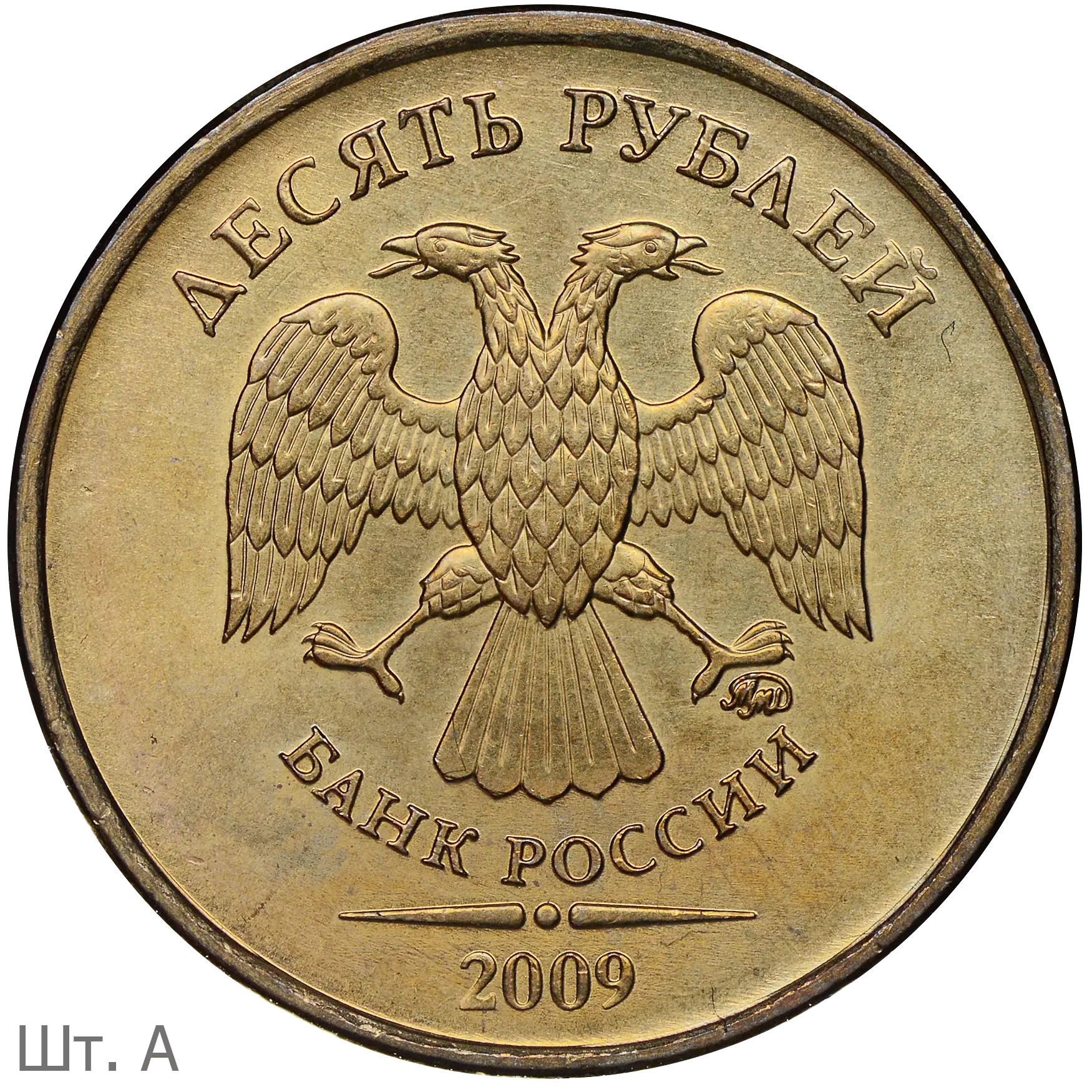 Монеты номиналом 10 рублей находятся в обращении с 1 октября 2009.