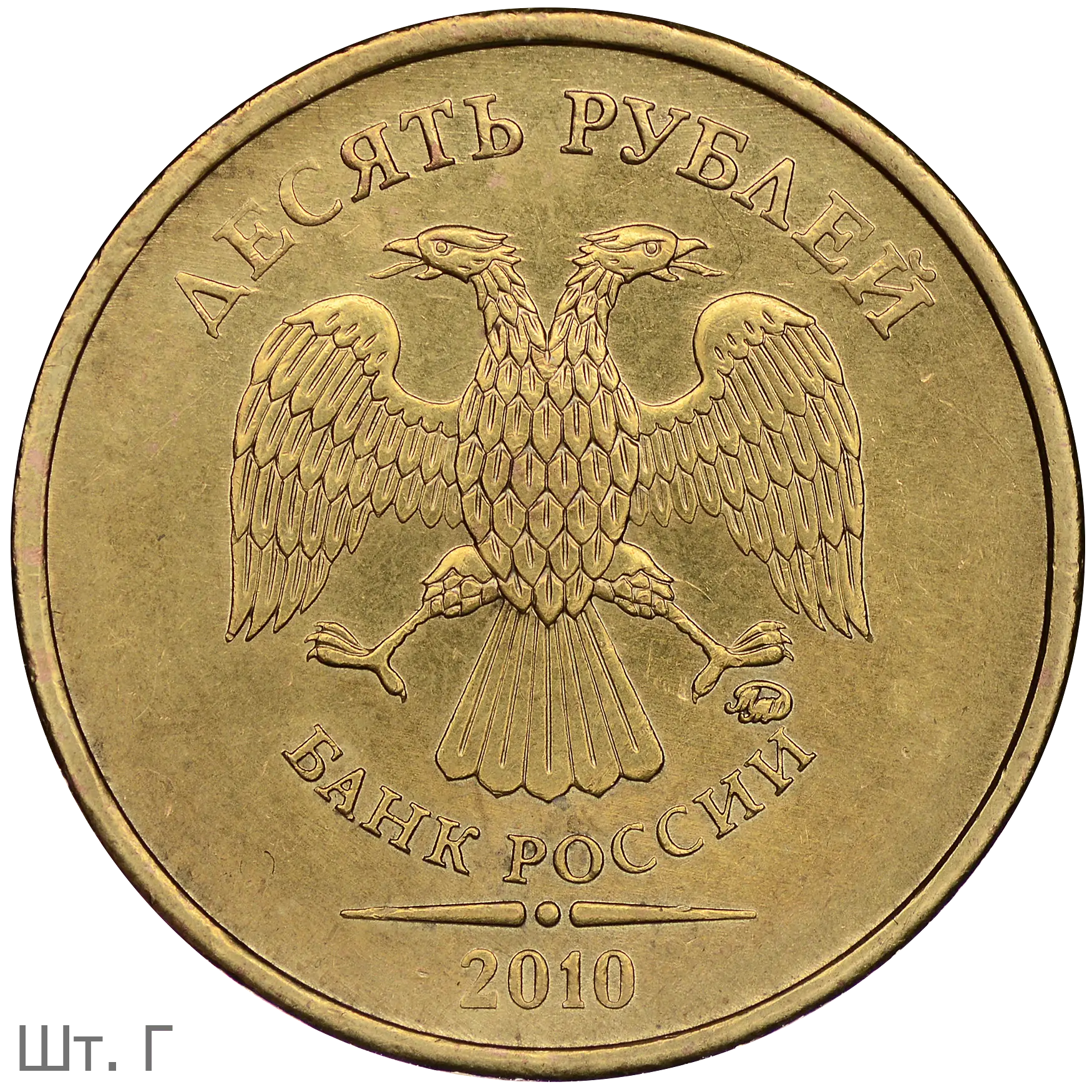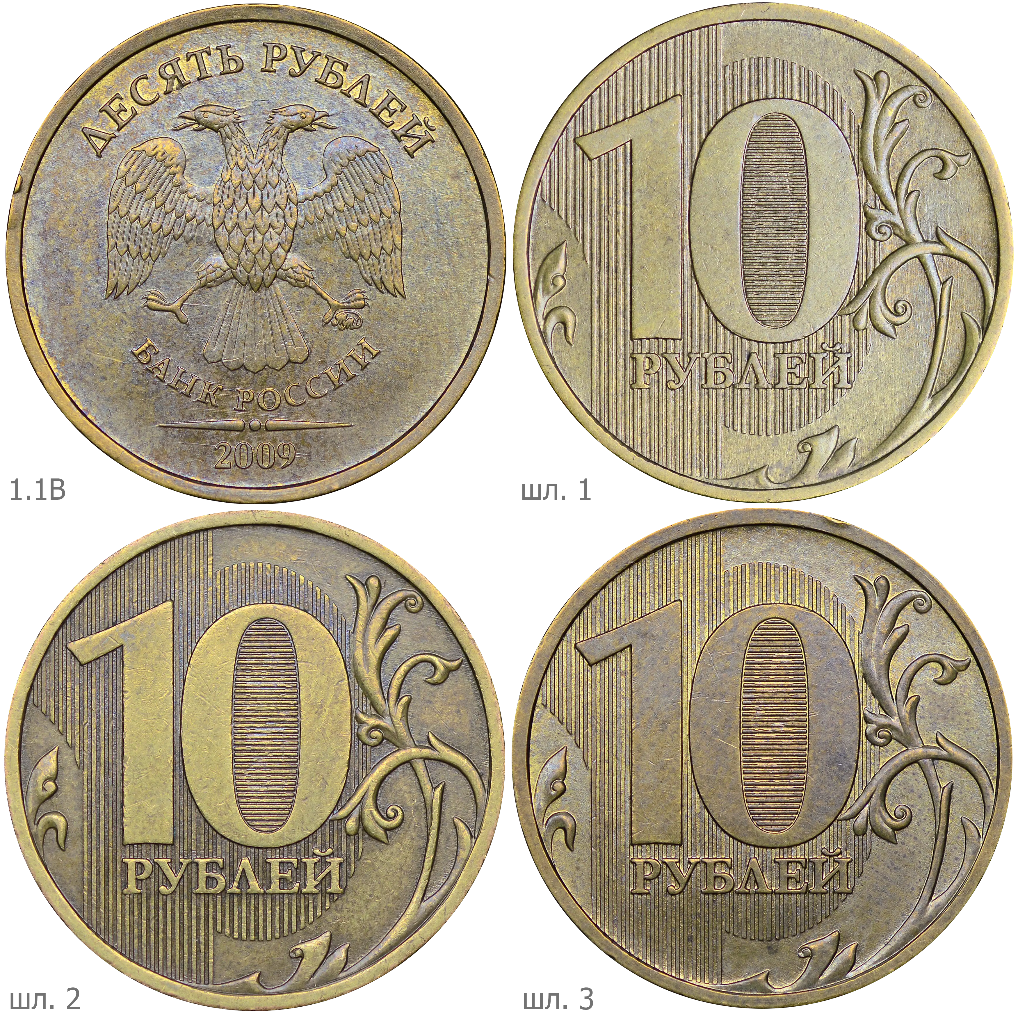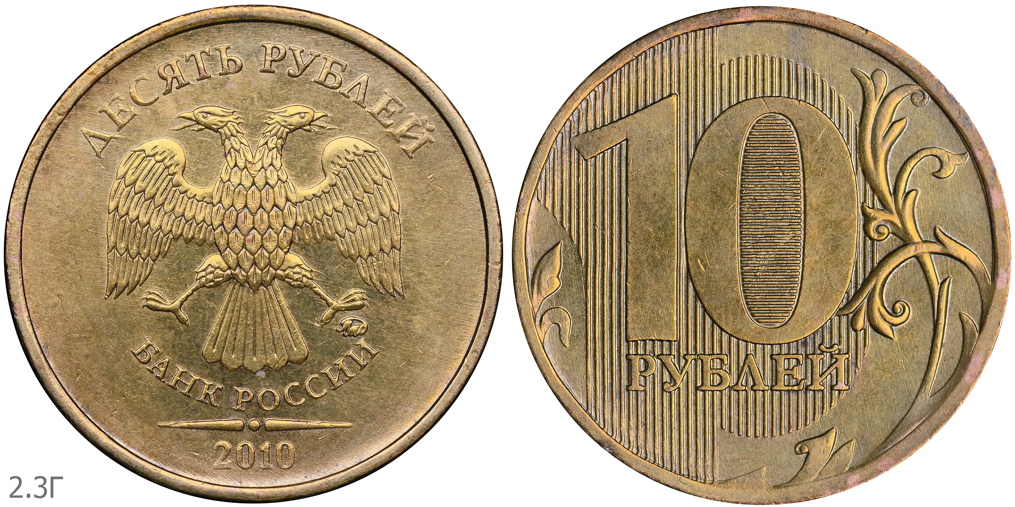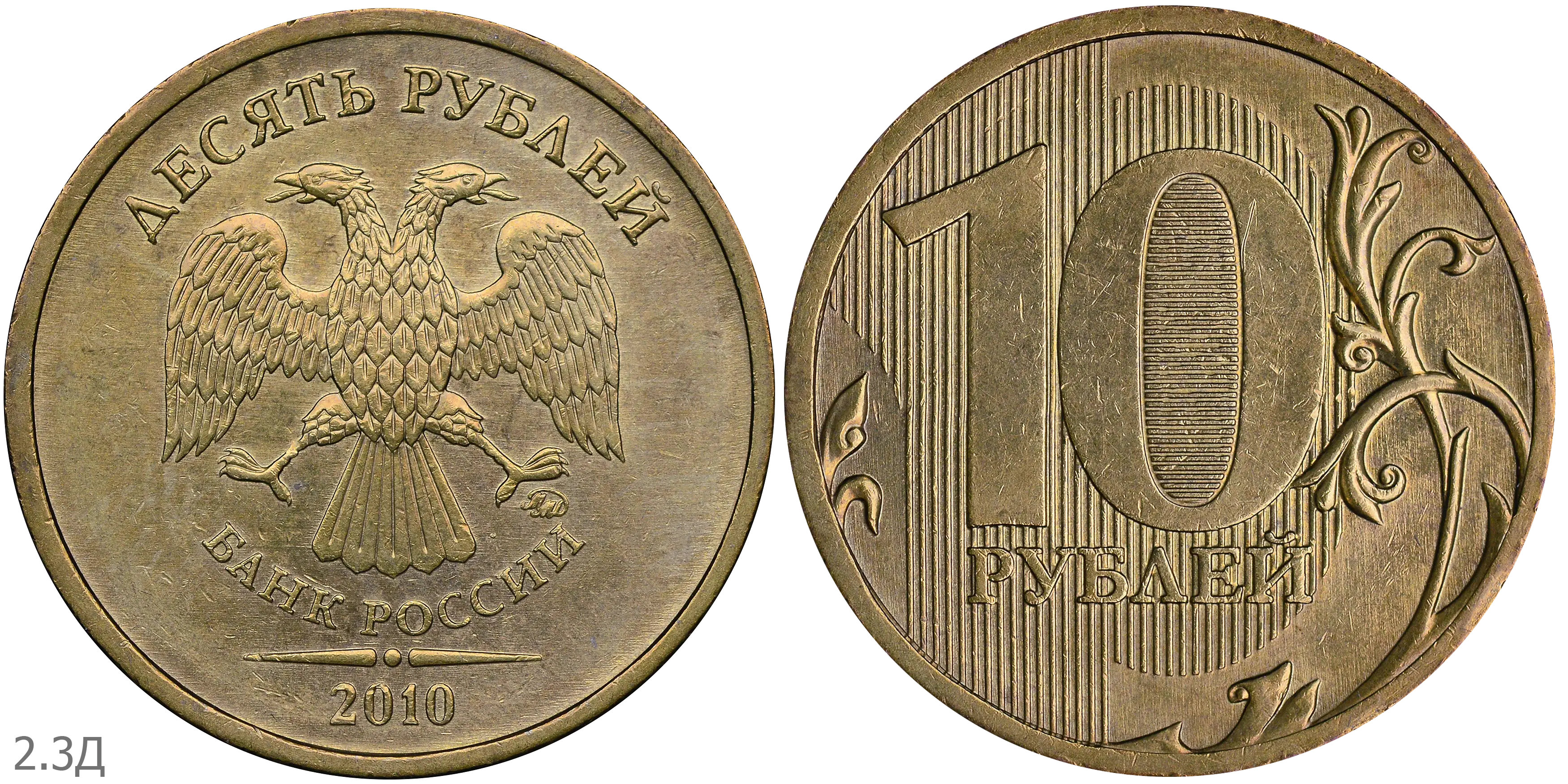 Монеты номиналом 10 рублей находятся в обращении с 1 октября 2009.