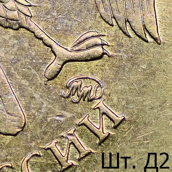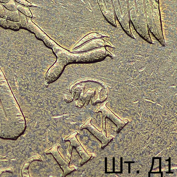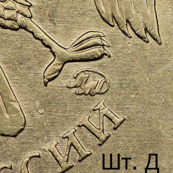 Штемпель Д1. Знак сильно приспущен в сравнении со шт. А.