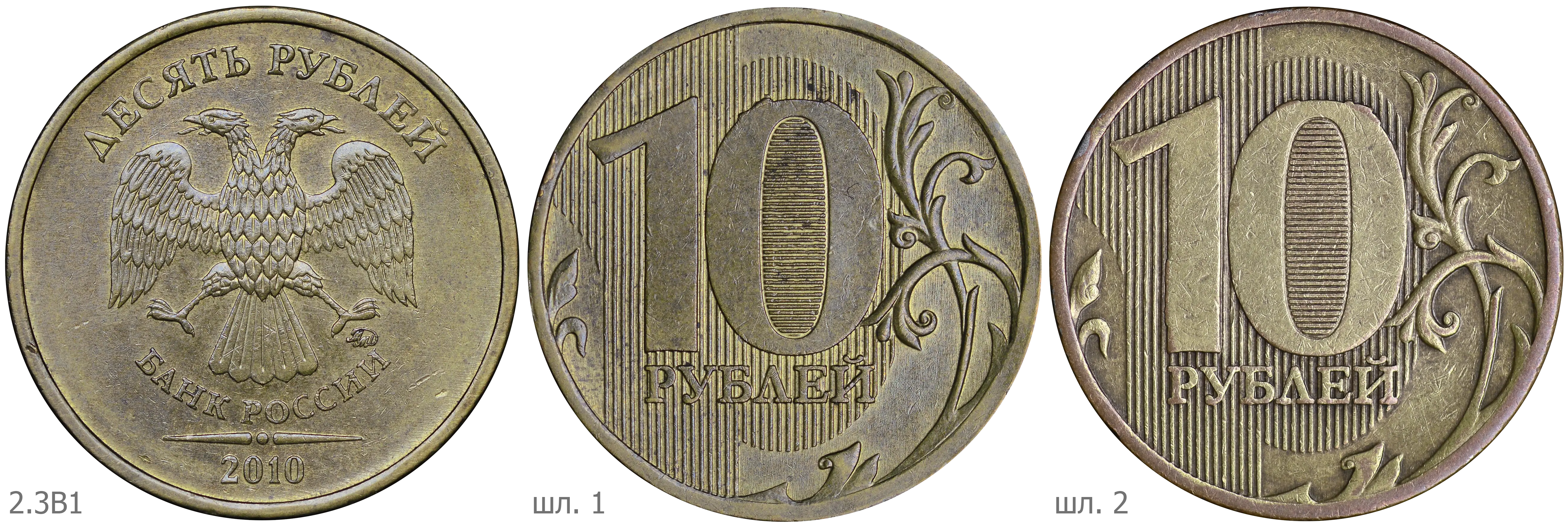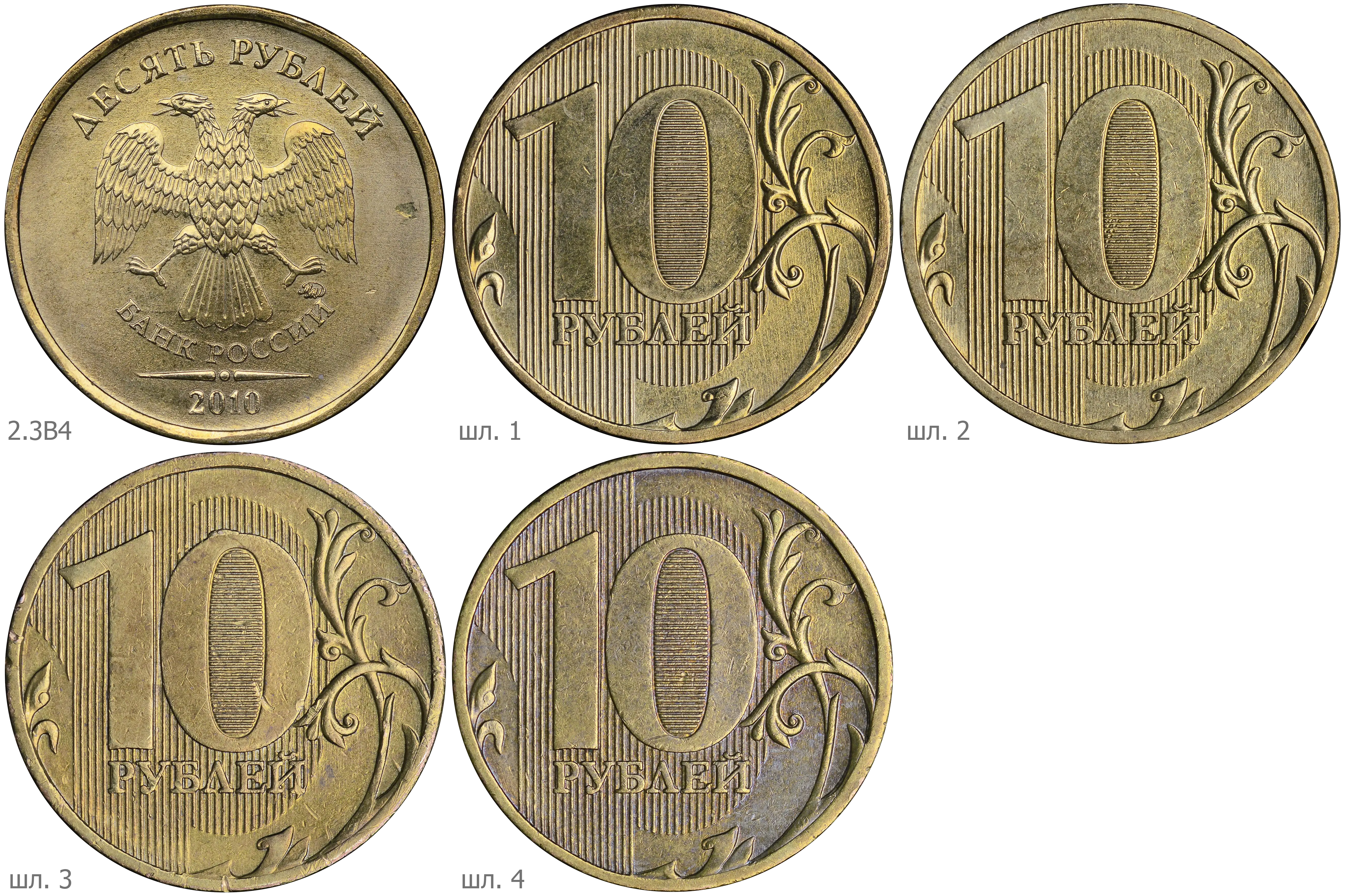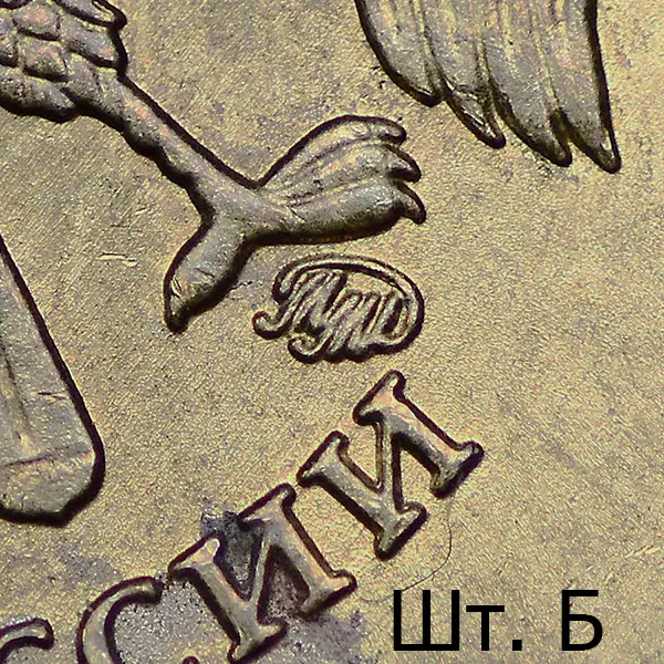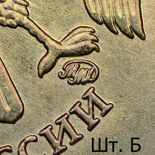 Последующие разновидности первой модели 2010 имеют индивидуальный рабочий штемпель с персональным клеймением пуансоном со знаком ММД. Размеры изображения уменьшены, элементы отдалены от канта в сравнении со шт. А. Размер шт. А плавает в диапазоне 0.5% - 1.0% относительно одноштемпельных вариантов.