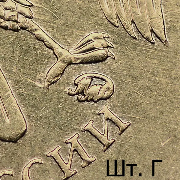 Штемпель Г. Знак низкорельефный, приподнят и смещён вправо в сравнении со шт. В.