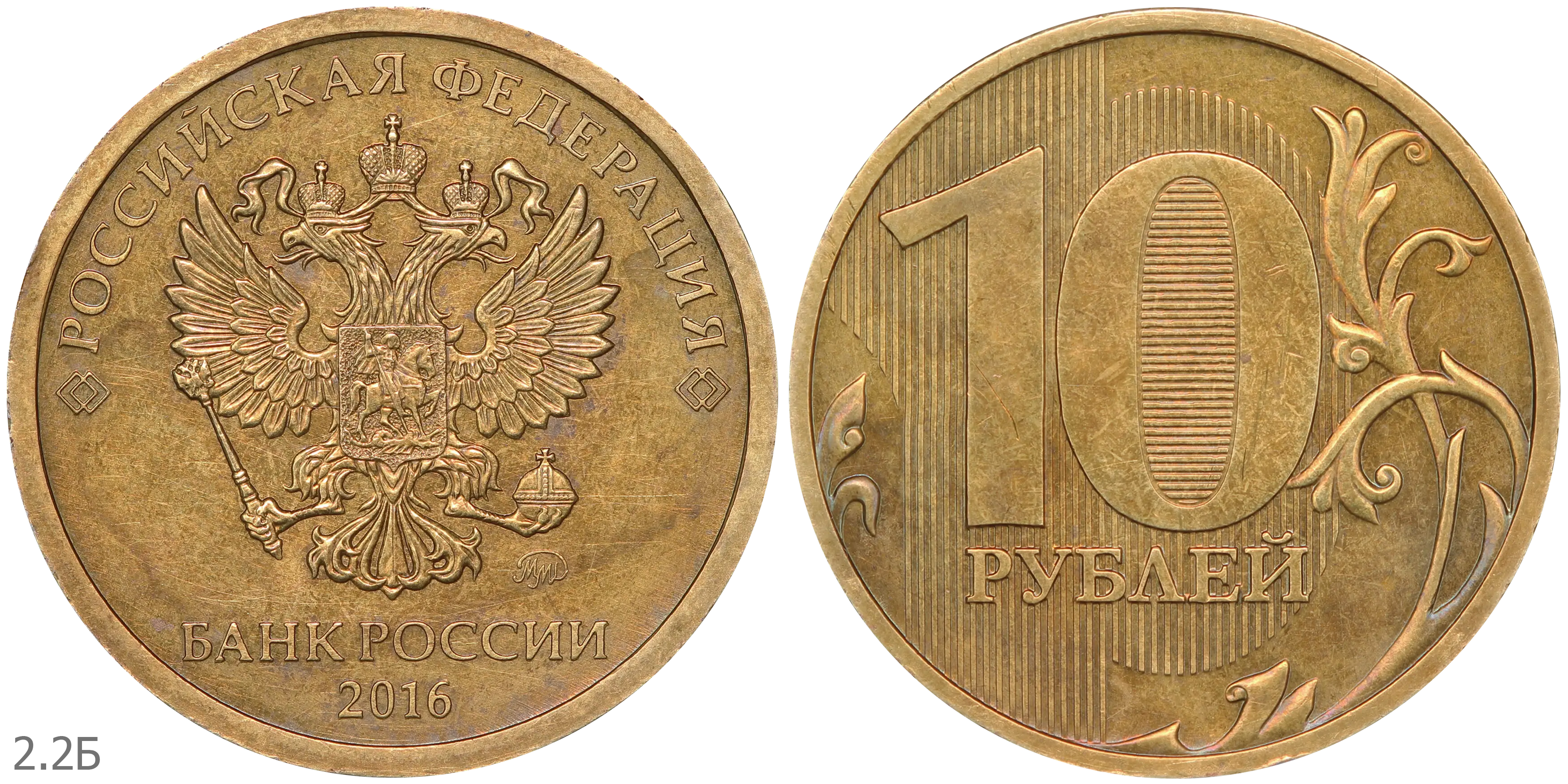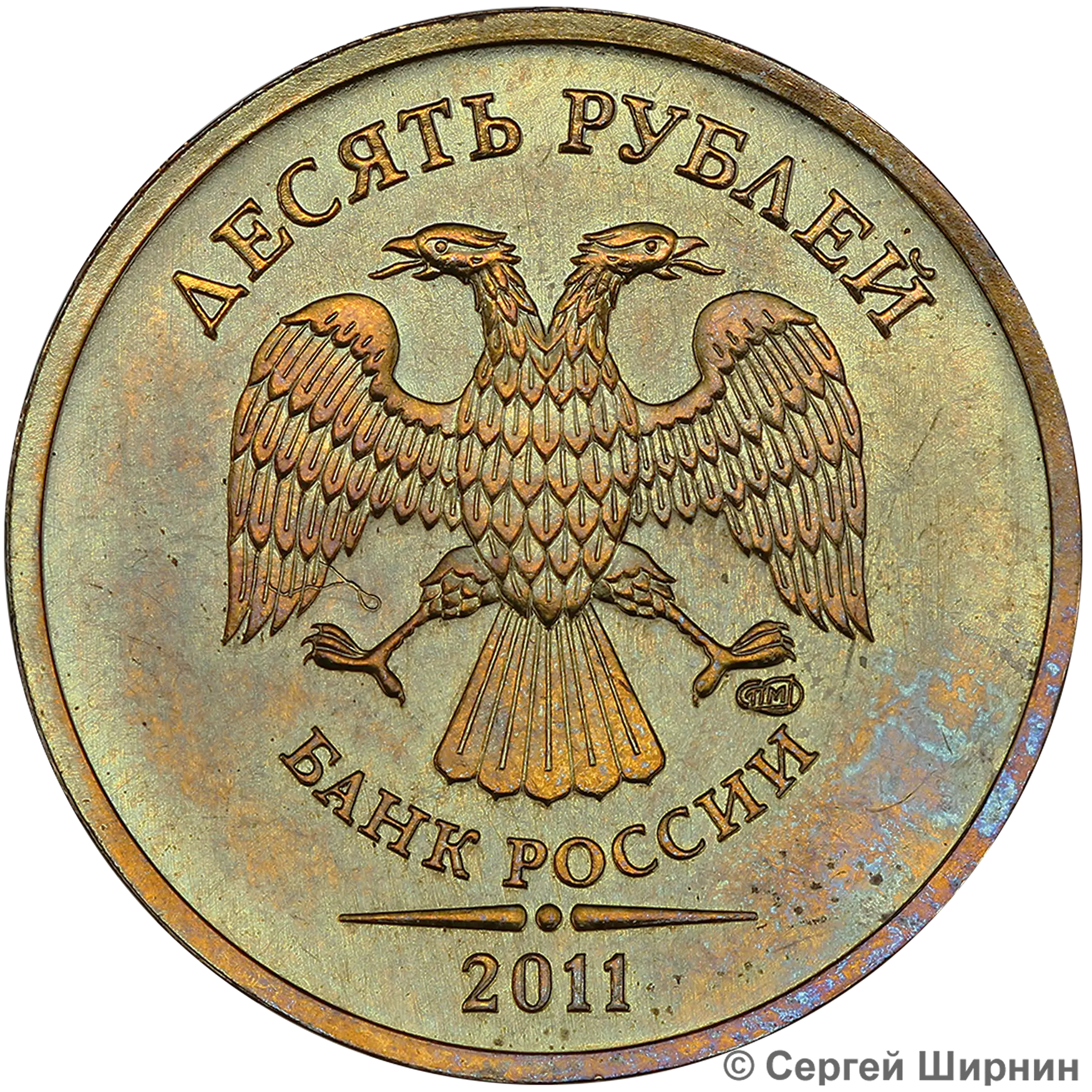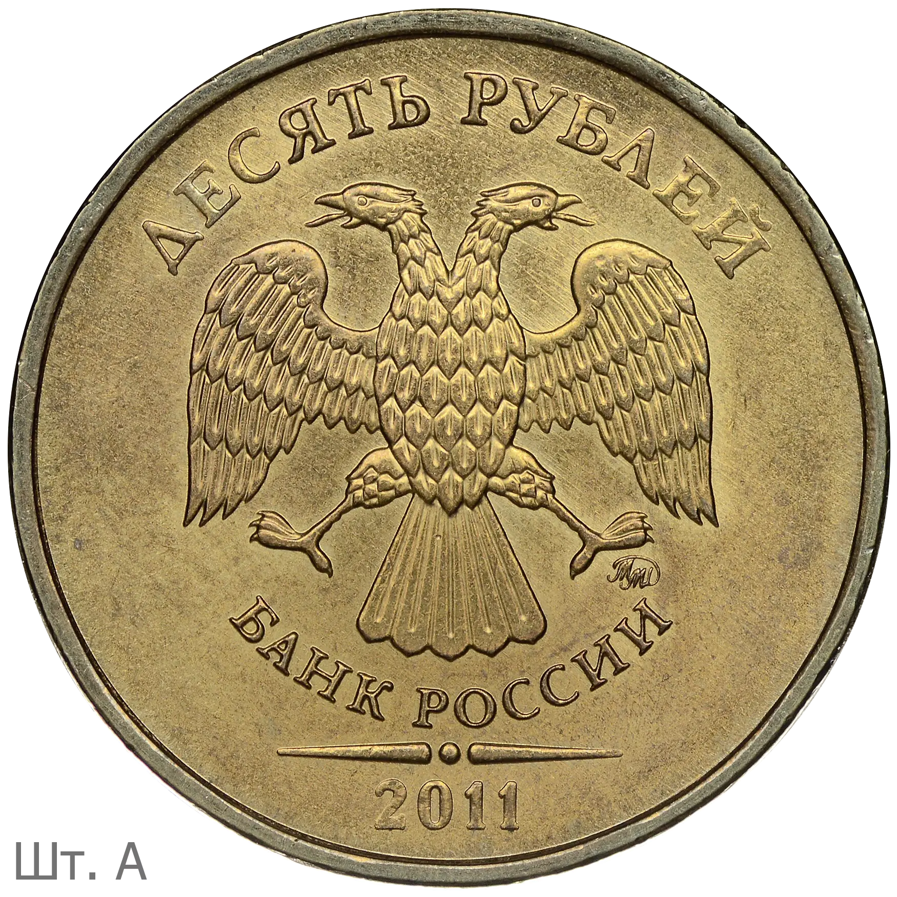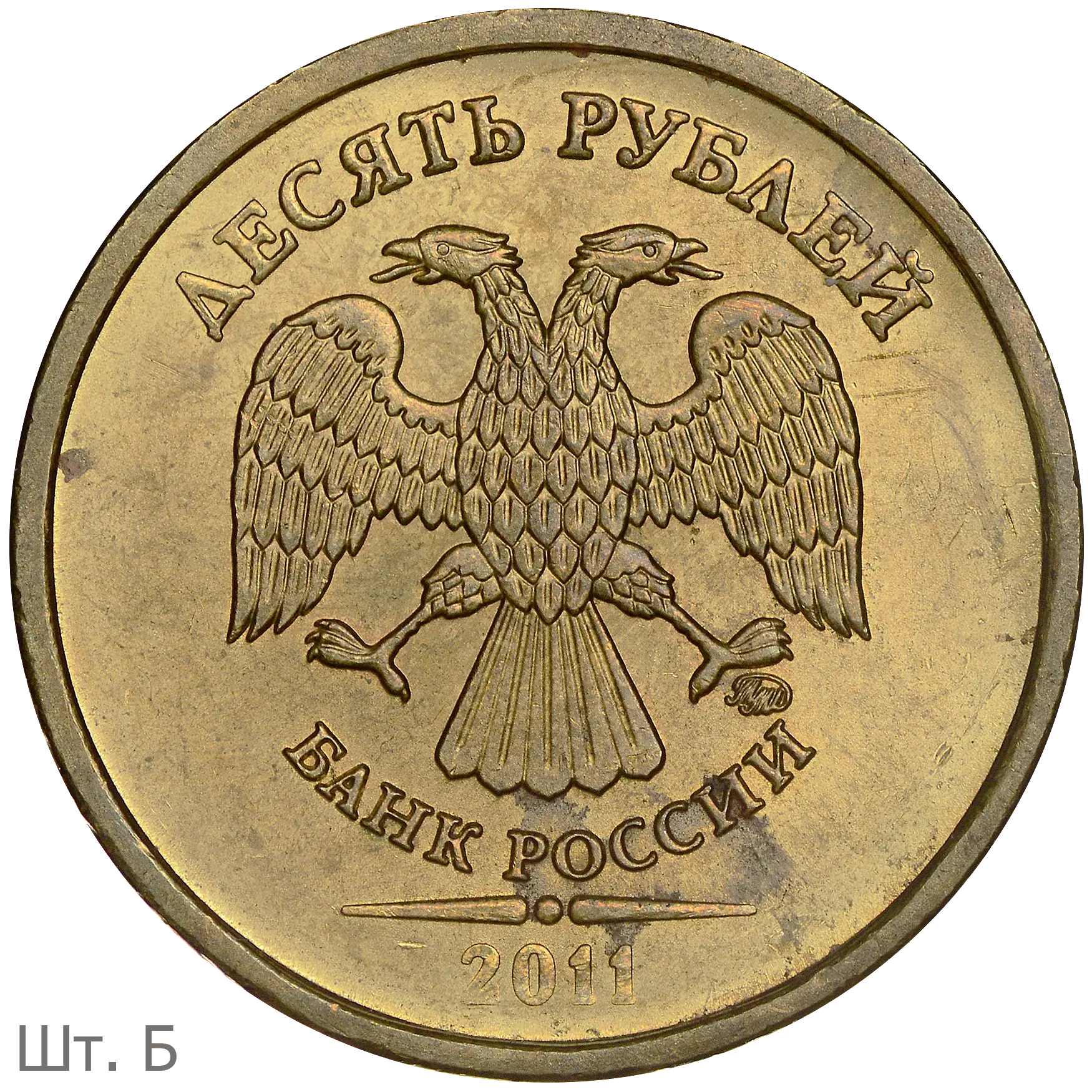 10 рублей 2011 ММД (шт. 2.2А) на латунной заготовке