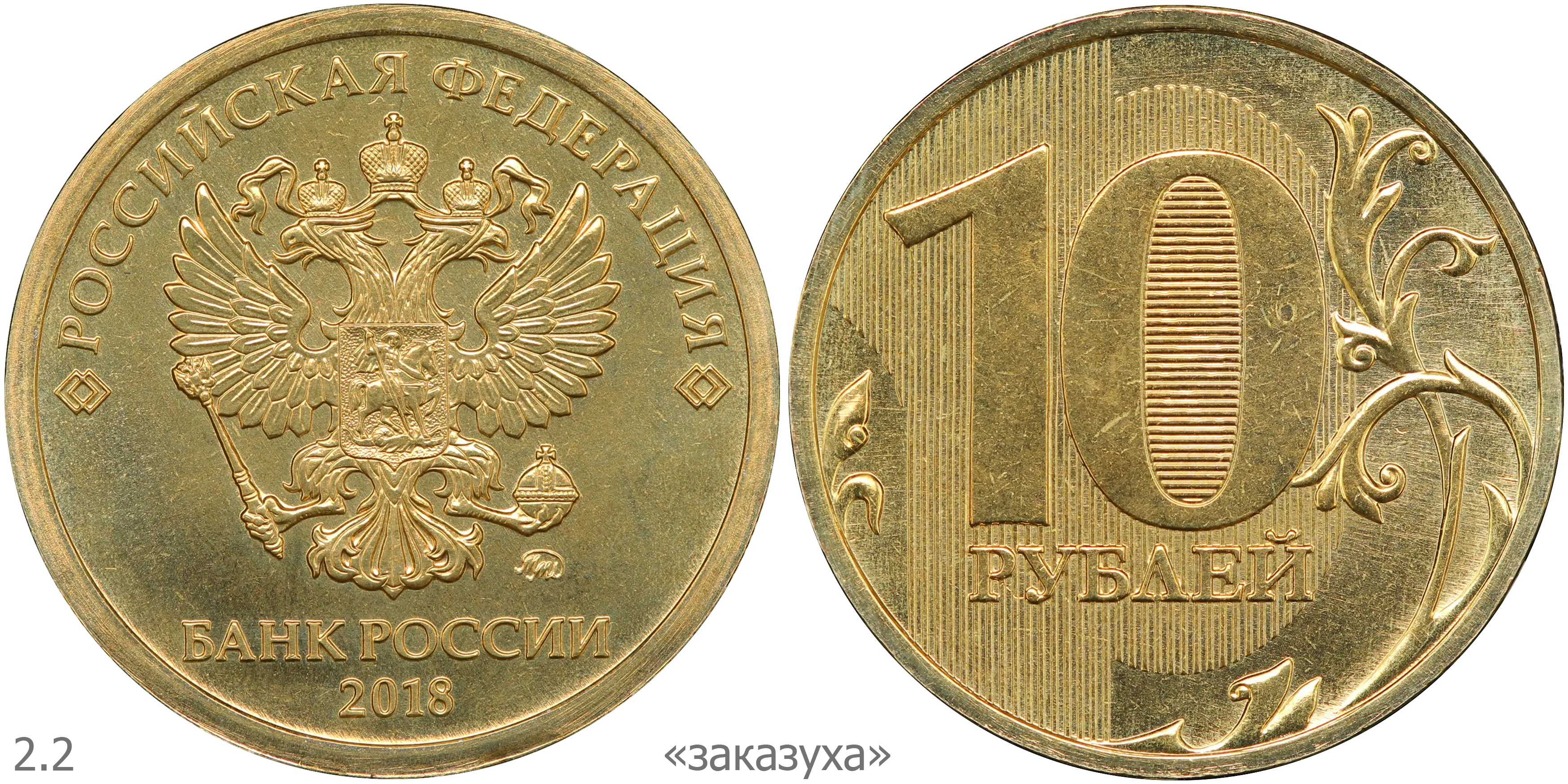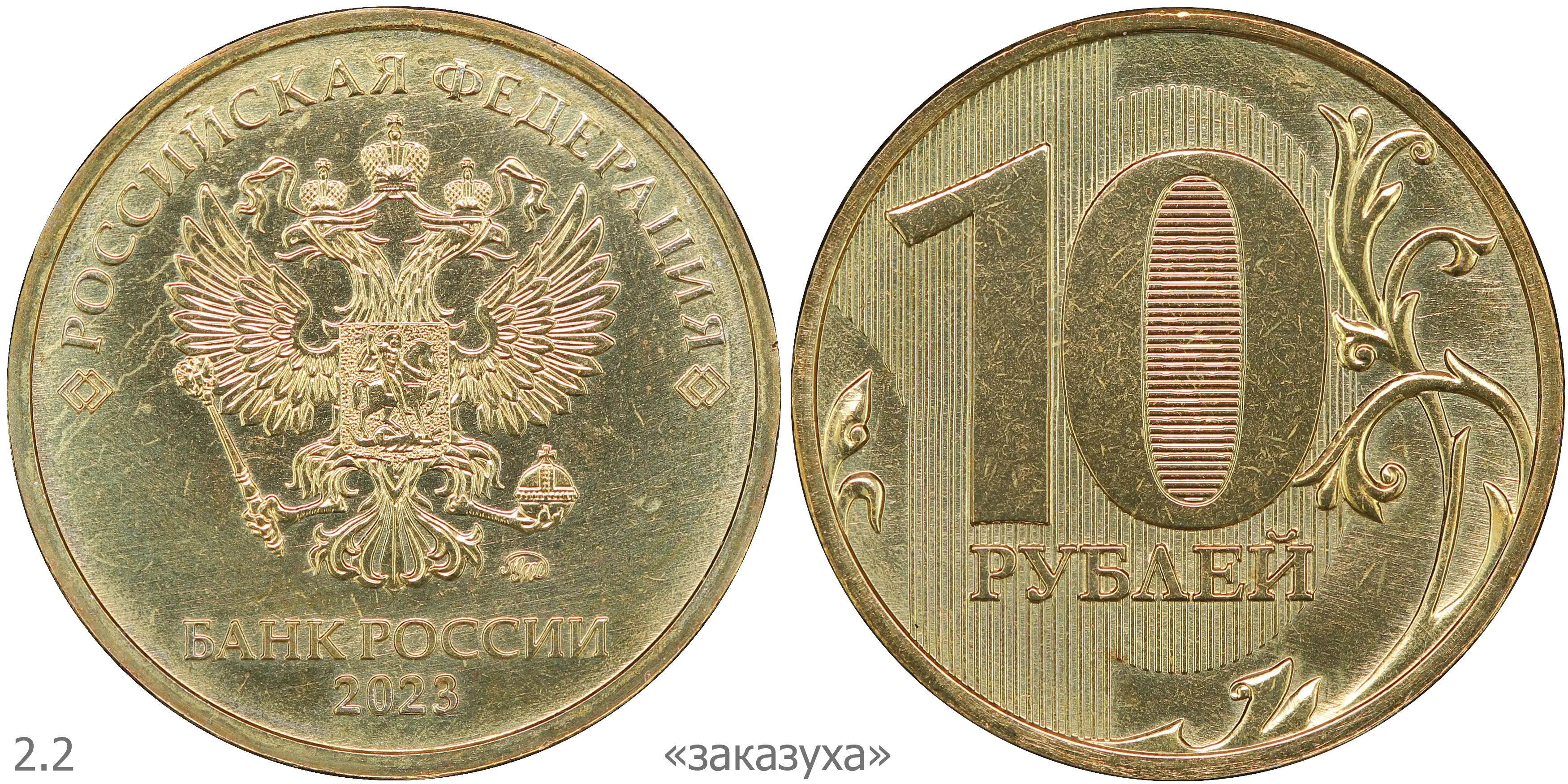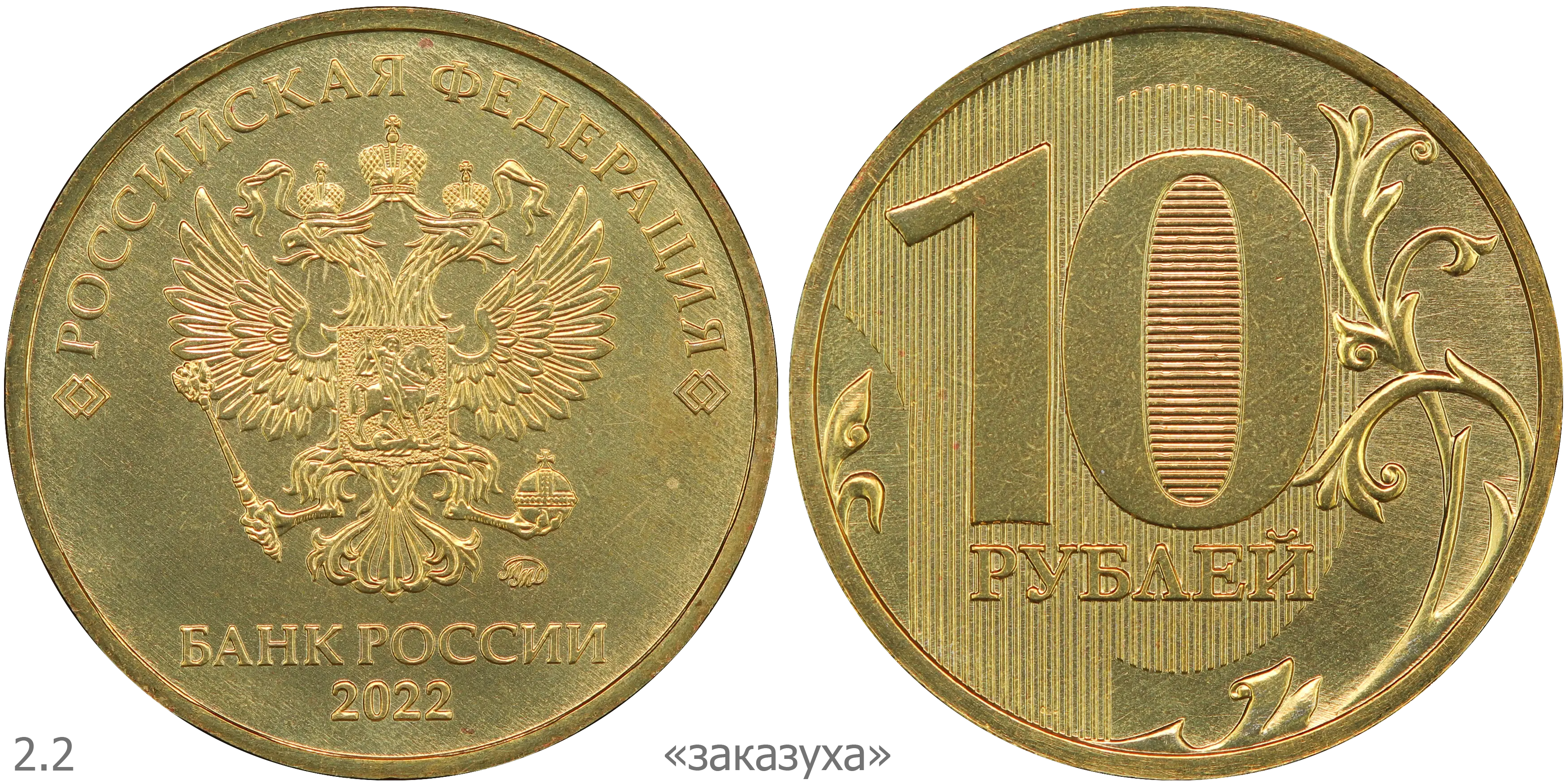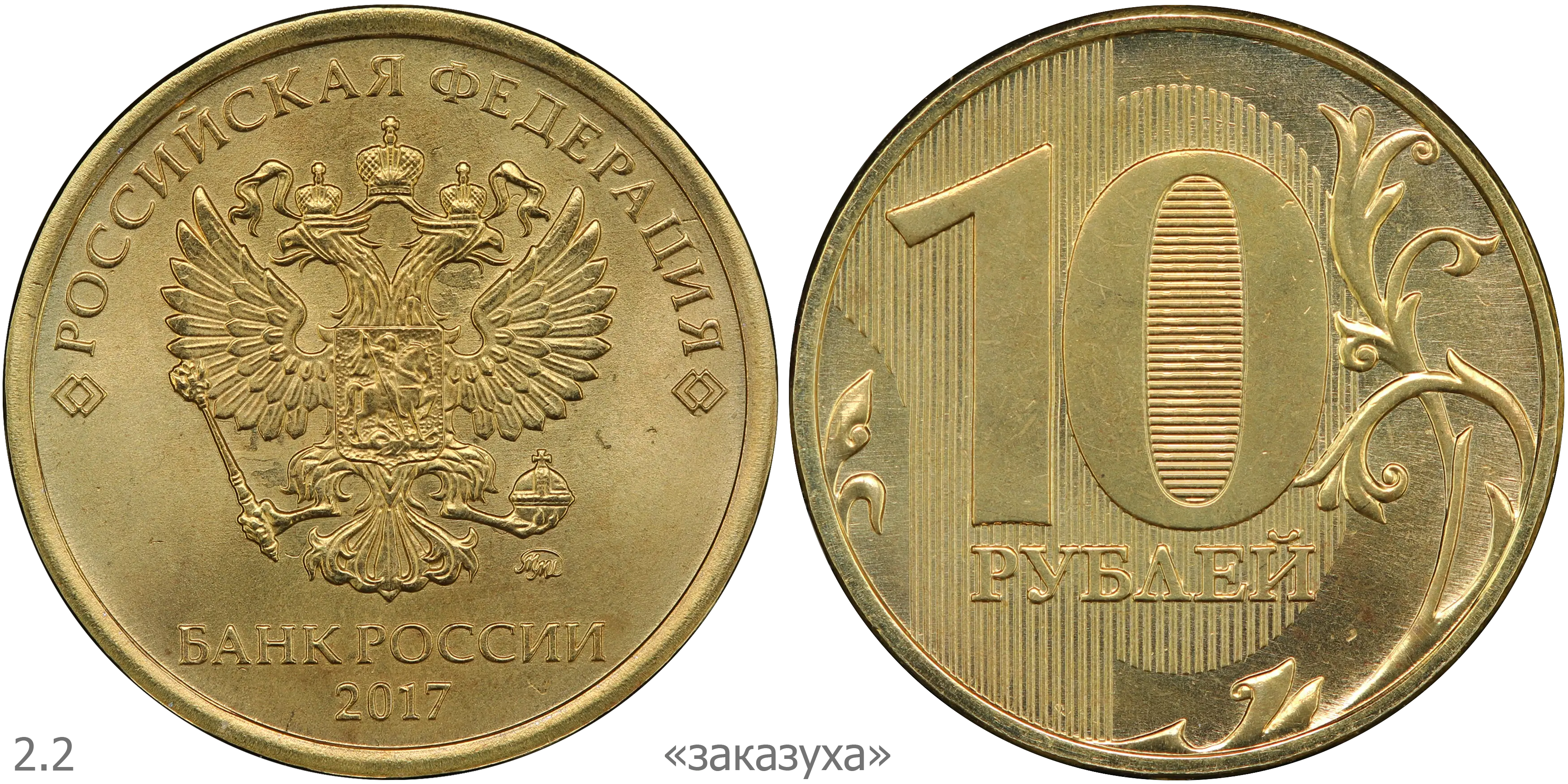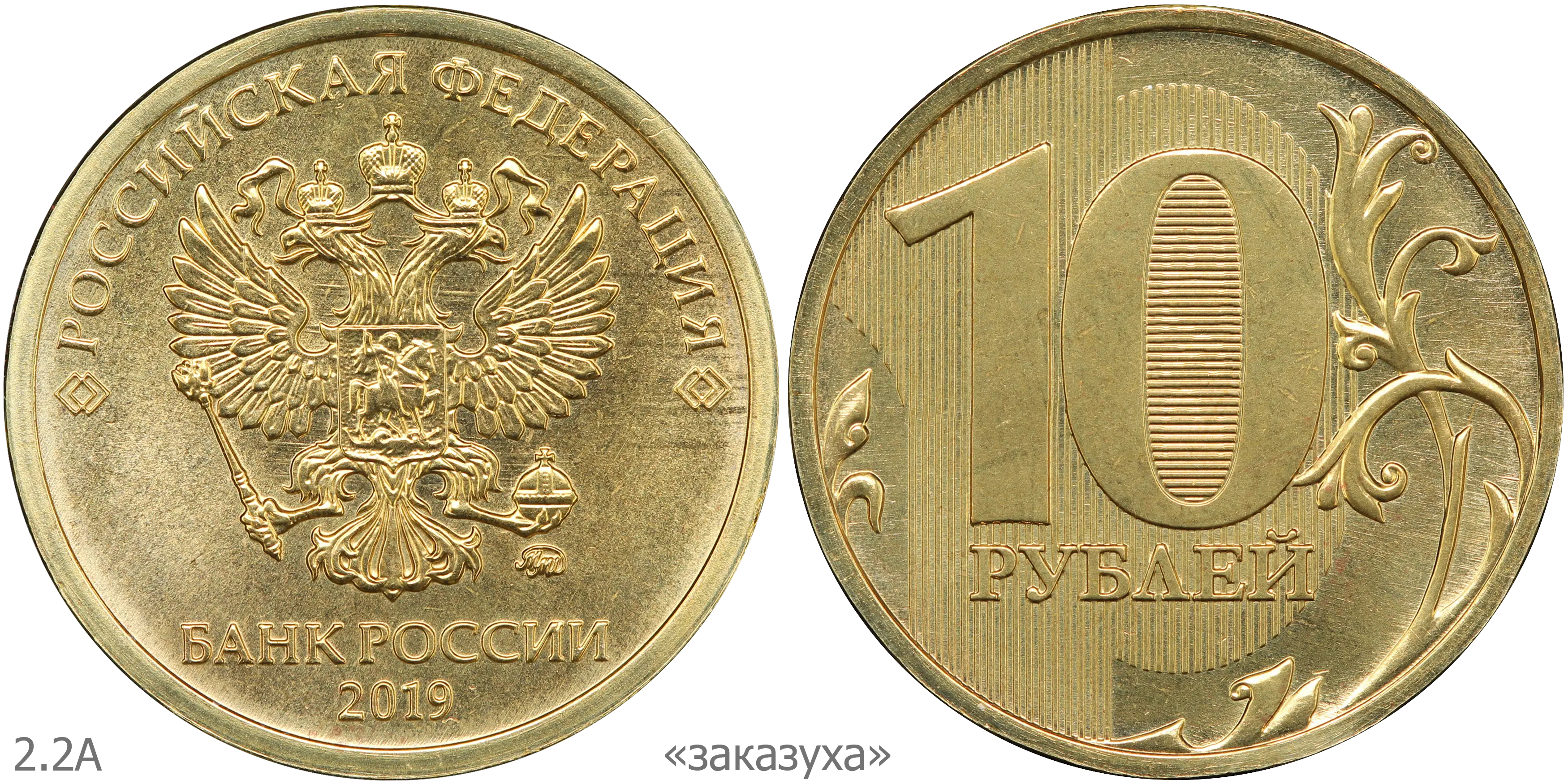 10 рублей 2011 ММД (шт. 2.2А) на латунной заготовке