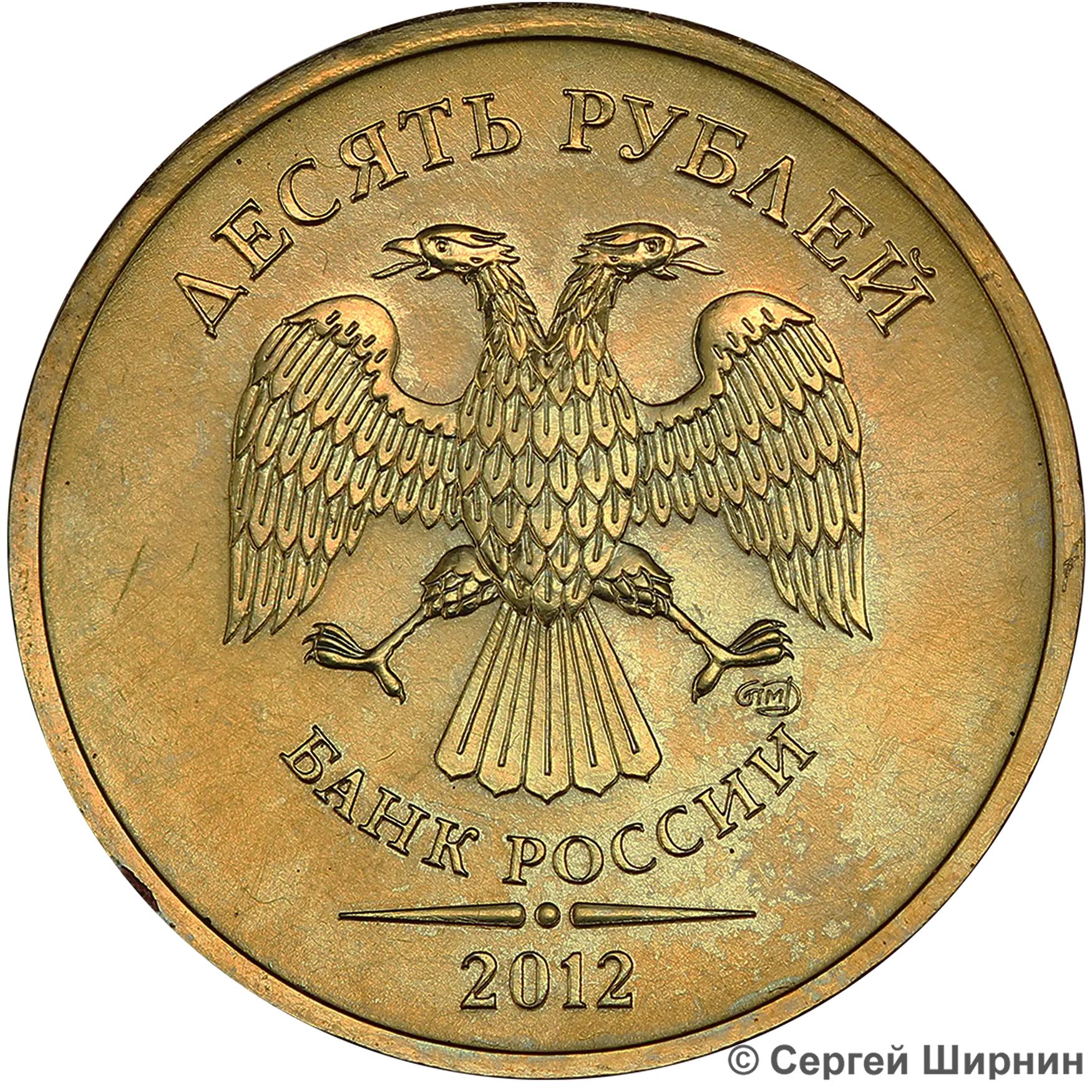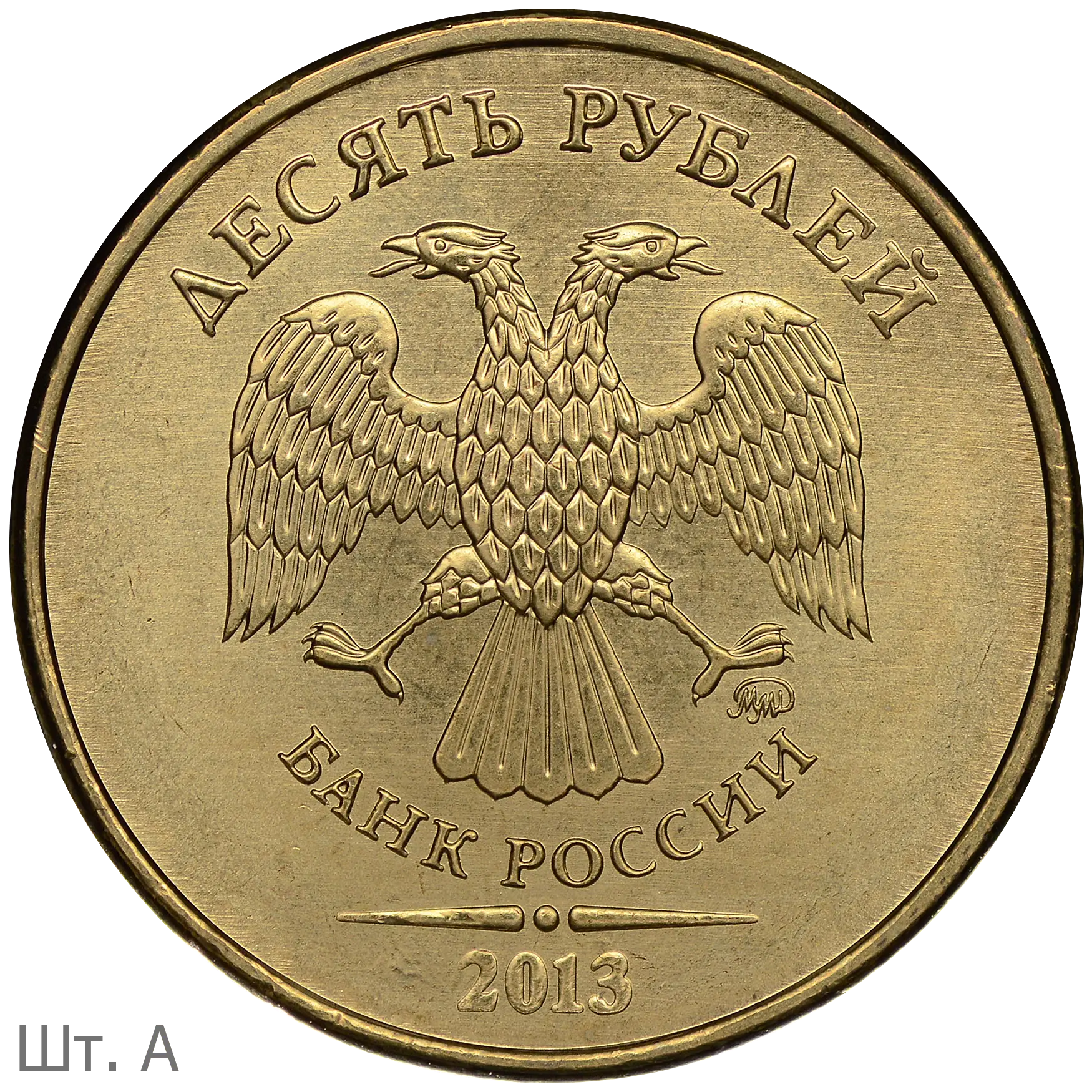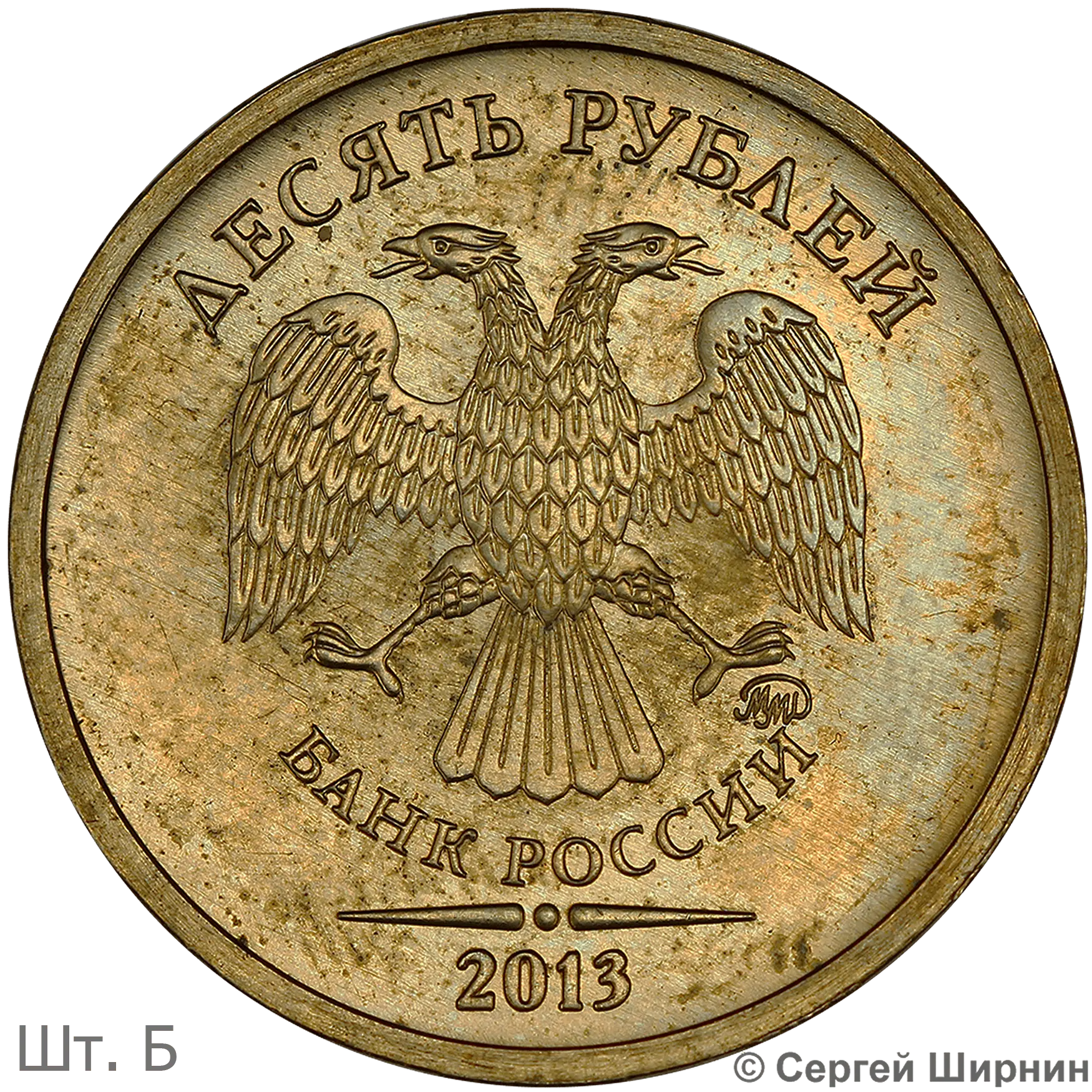 10 рублей 2011 ММД (шт. 2.3А) на латунной заготовке
