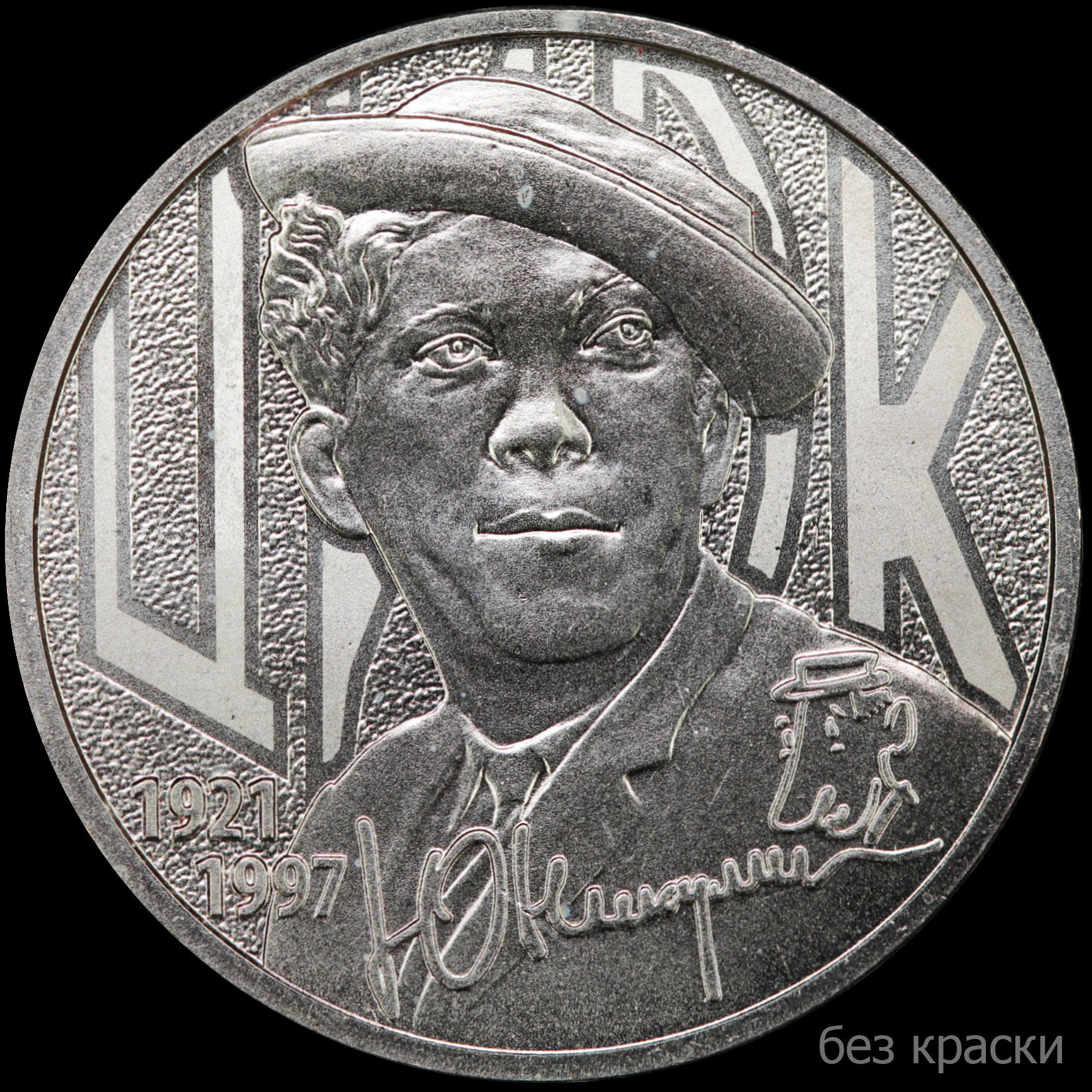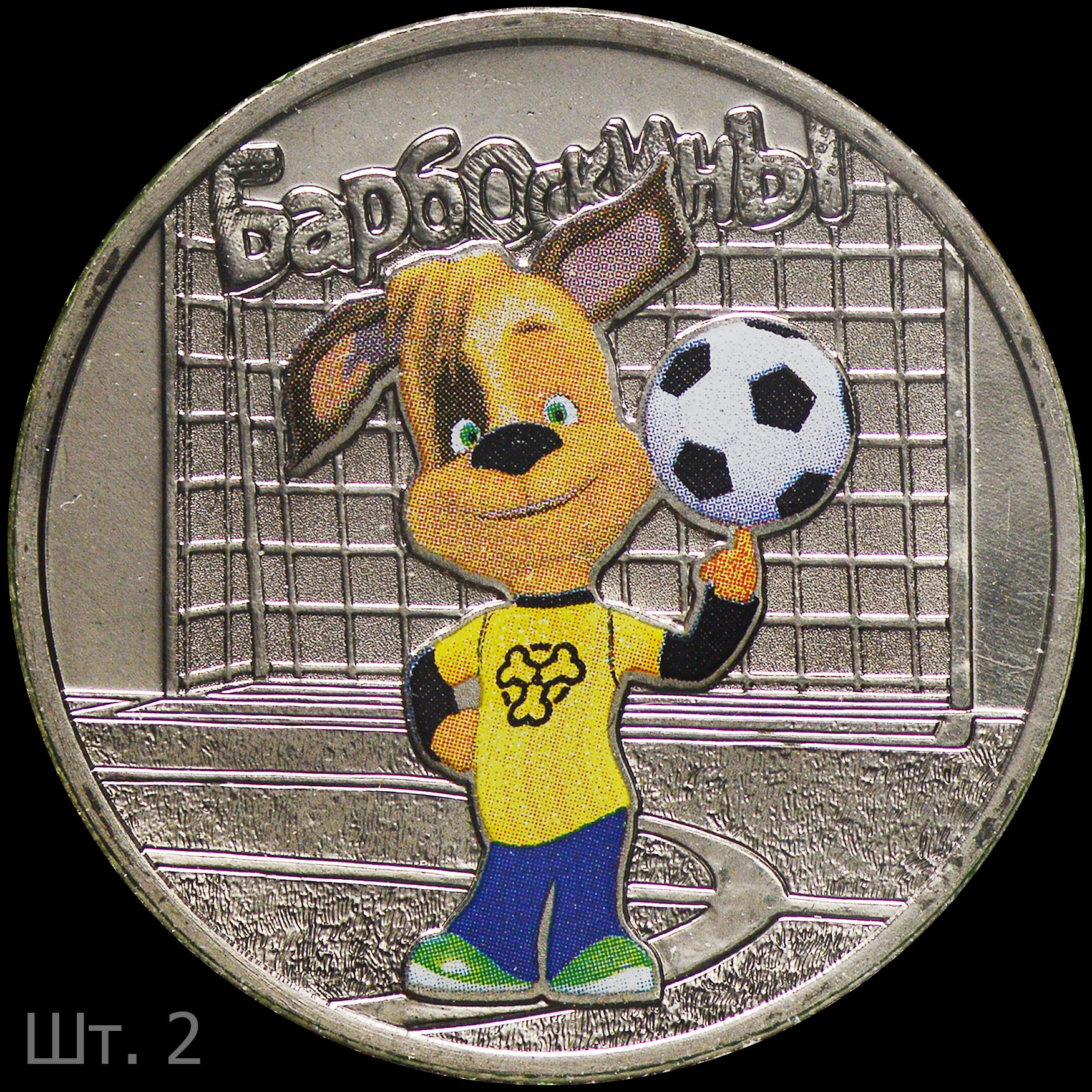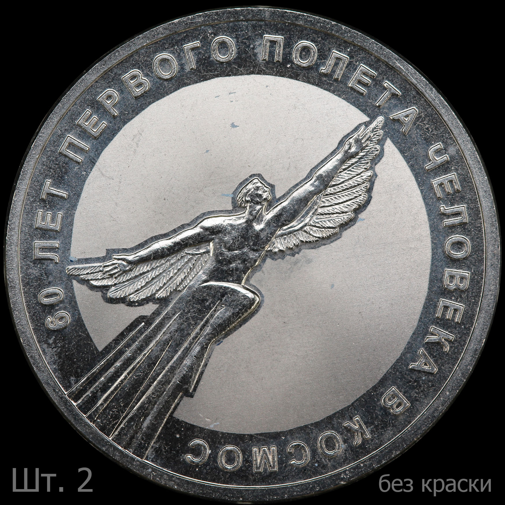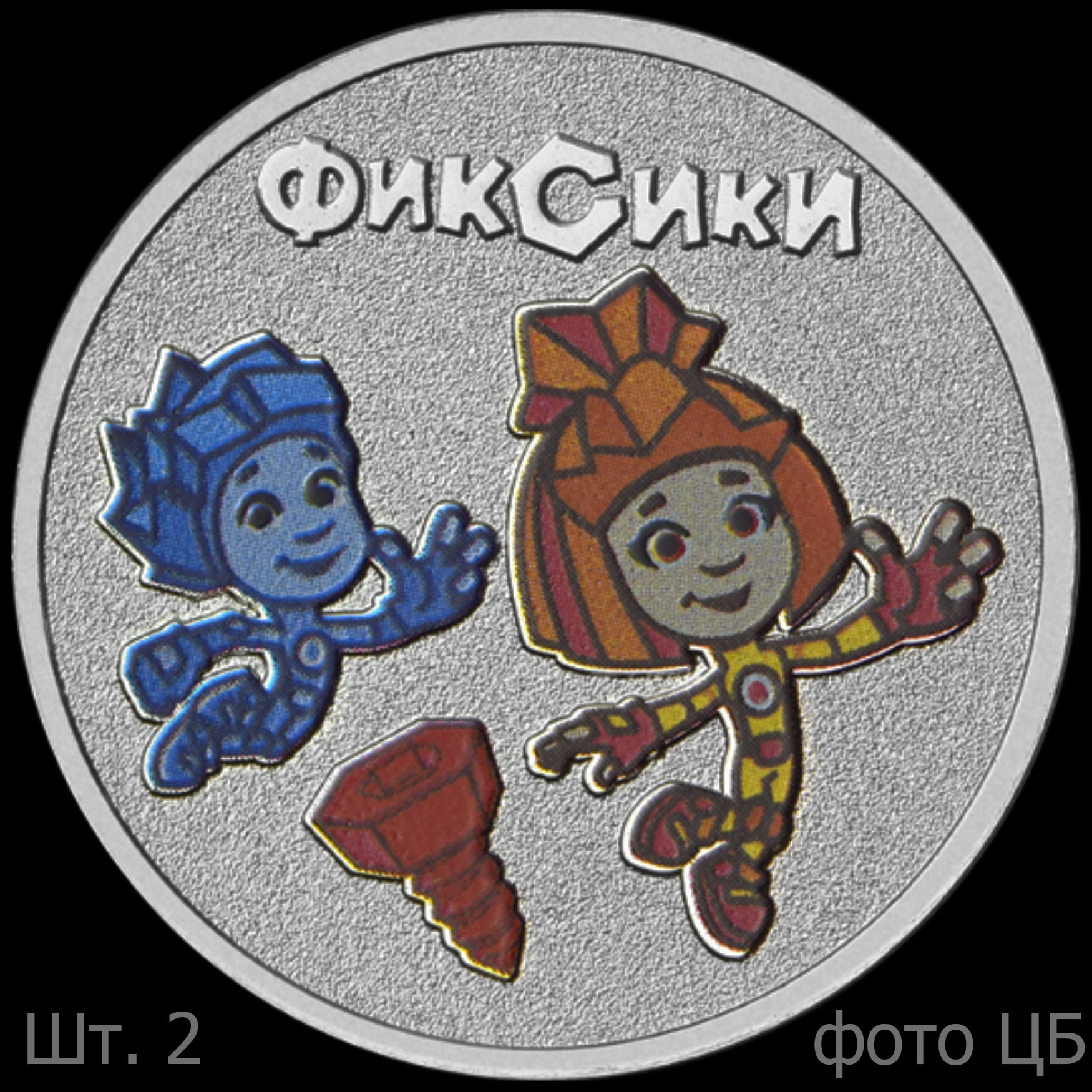 Примечание. Разновидность монеты 2.1Г является образцовым вариантом, в "ообороте" неизвестна. Цветное покрытие на неё наносилось комбинацией из пяти отдельных цветов. На тиражных монетах этого выпуска и далее при тампопечати используется комбинация CMYK цветов.