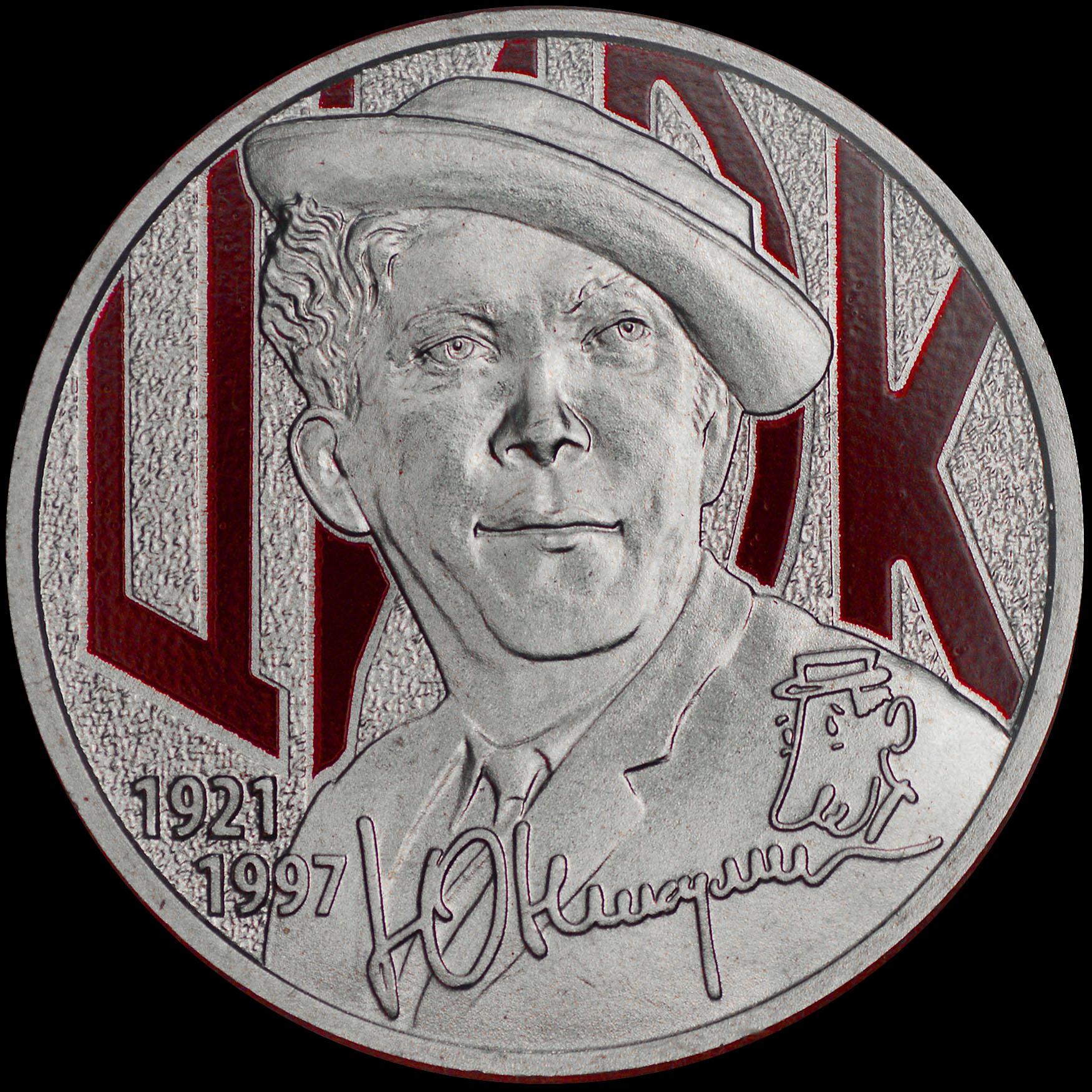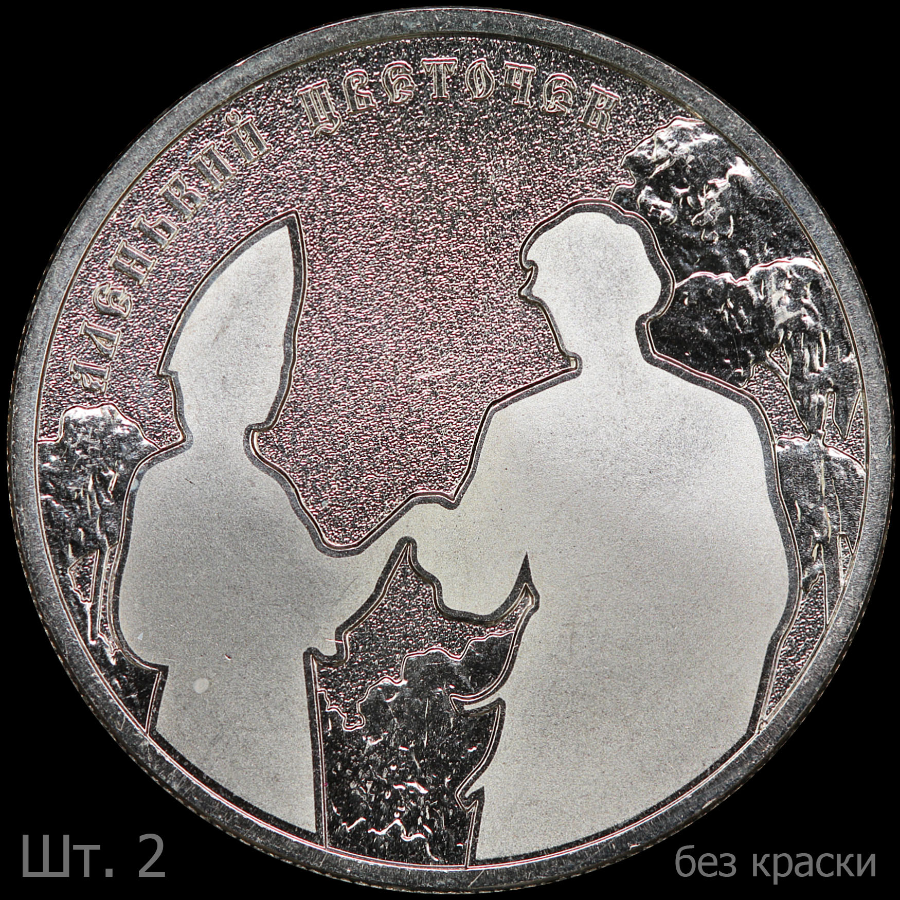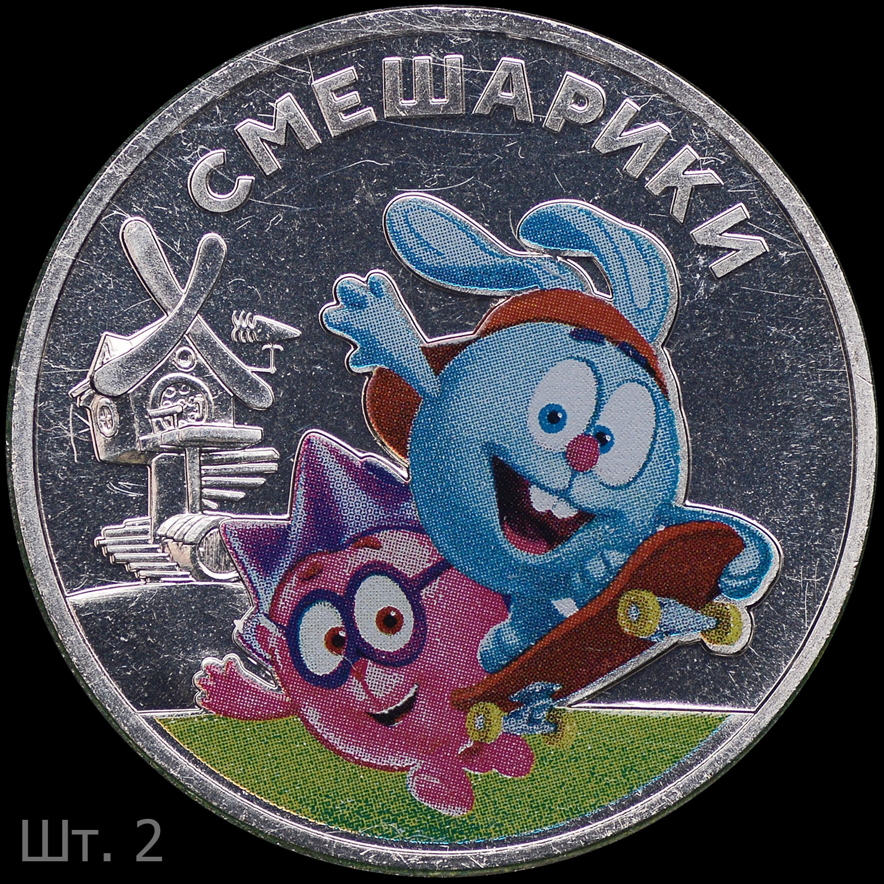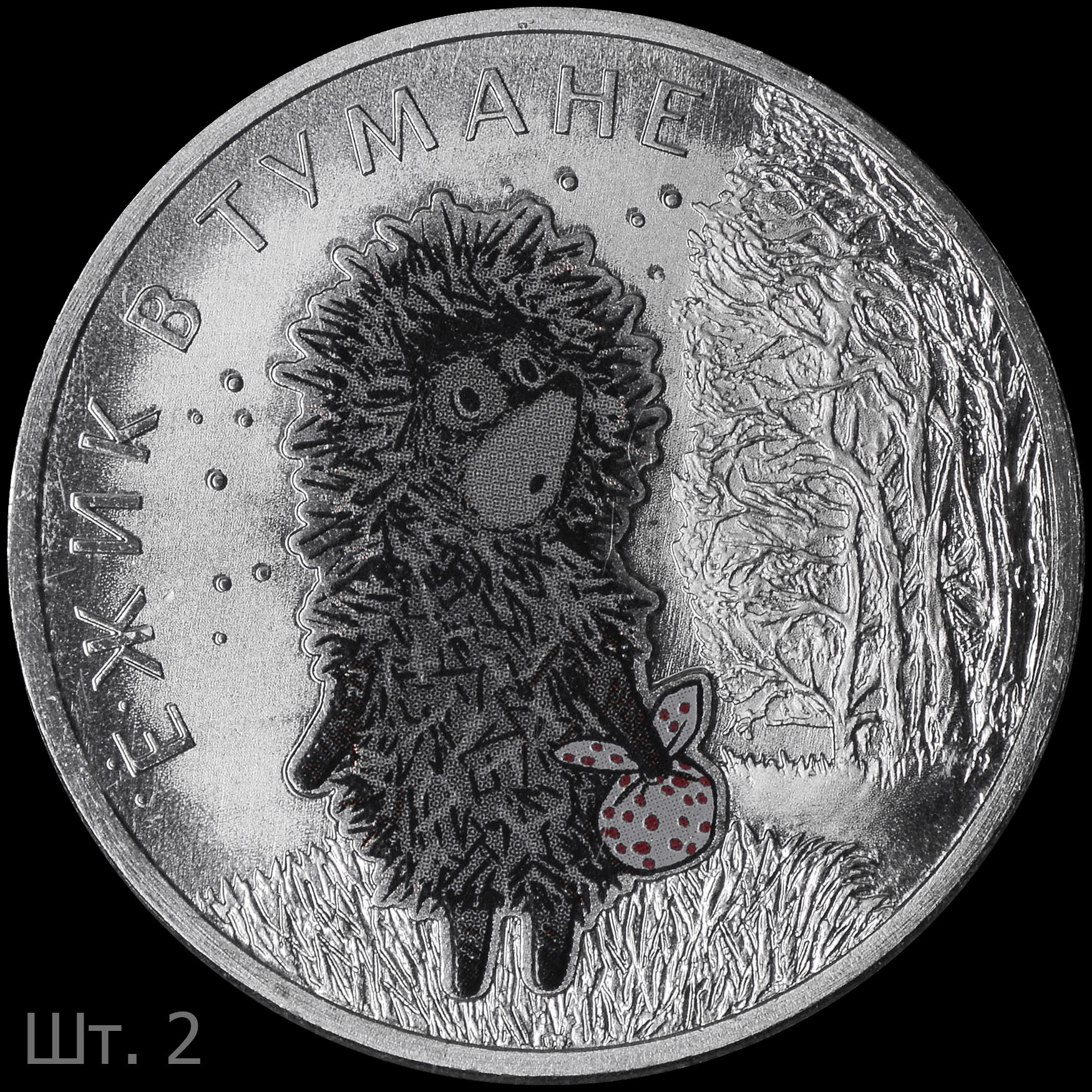 Примечание. Разновидность монеты 2.1Г является образцовым вариантом, в "ообороте" неизвестна. Цветное покрытие на неё наносилось комбинацией из пяти отдельных цветов. На тиражных монетах этого выпуска и далее при тампопечати используется комбинация CMYK цветов.