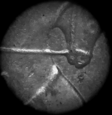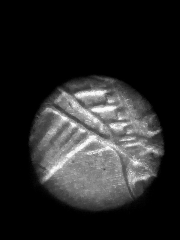 Со сканами пока не получается. Вот фрагмент минтмарки через микроскоп.