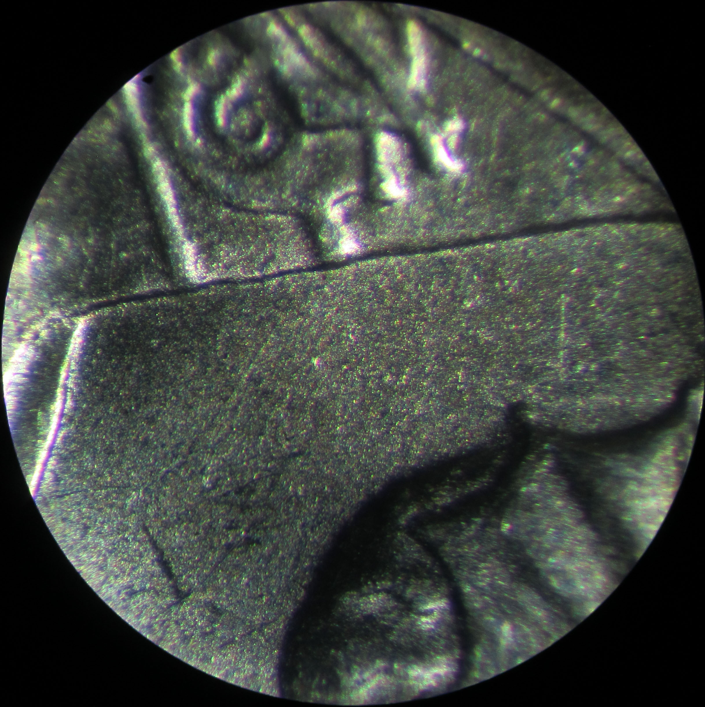 На реверсе есть очень чёткая линия, идущая от основания единицы, а также шлифовка по кругу около канта: