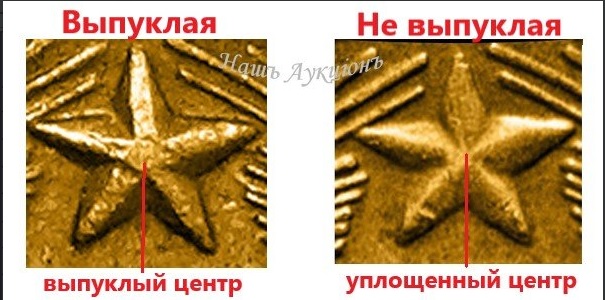 На аверсе смотрим на звезду и ручку серпа.