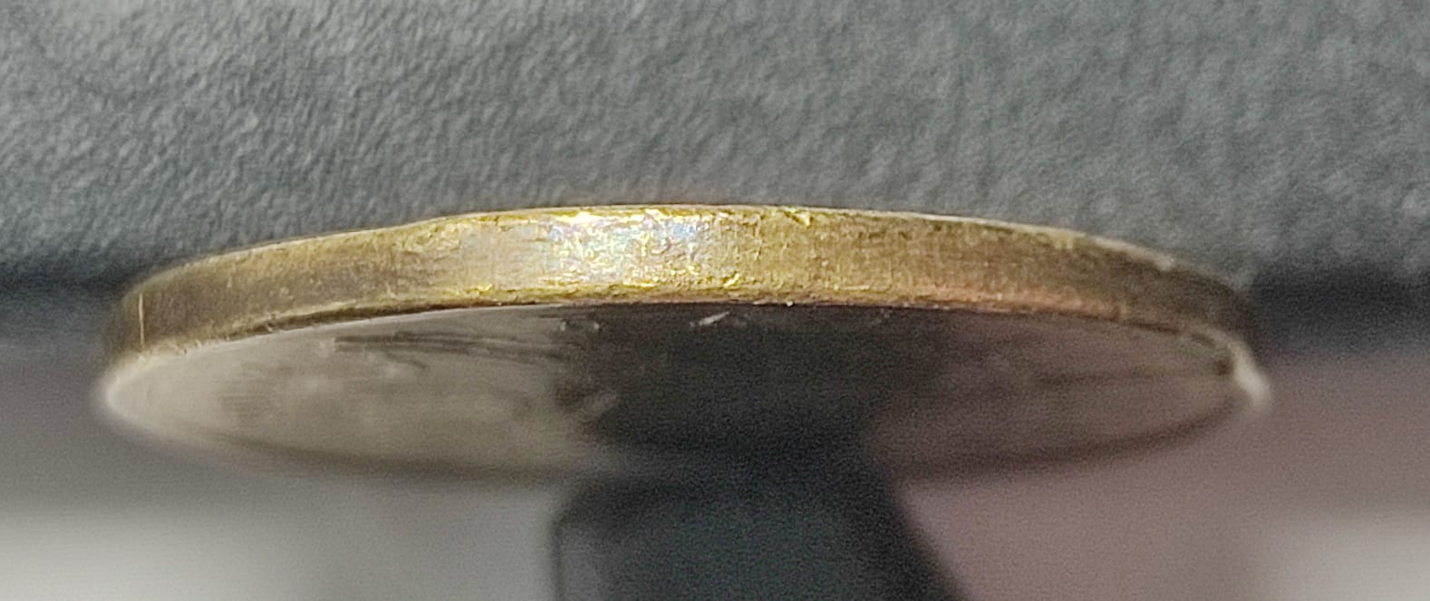 Что это за брак? - кант не придавлен, в некоторых местах канта есть шлифовка, совпадает с направлением шлифовки на поле. Интересно что это именно на варианте с гальванопорытием, где кроме раскола других браков не видно.