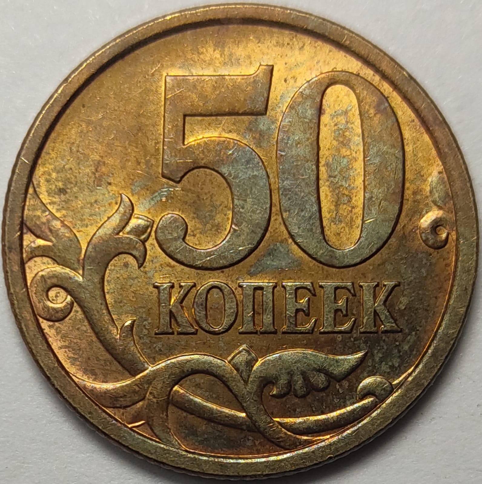 Вообще по статистике можно сказать, что красных заготовок много, в том числе и редкие 50 копеек 2003 СП в идеальном состоянии попадались красные, и 50 копеек 1999 и 2002 СП изредка попадаются, но вот такая как эта 2.33А, хоть и обычная разновидность, но выделяется сразу.