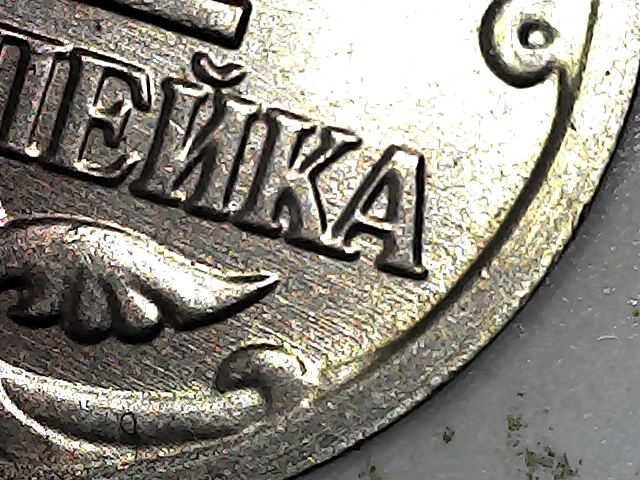 У копейки сильно выжделился кант на реверсе и аверсе,кратка отдалена от стоек П и формы другой и тоньше.ЙК расставлены,лист на 3 часа заходит выше