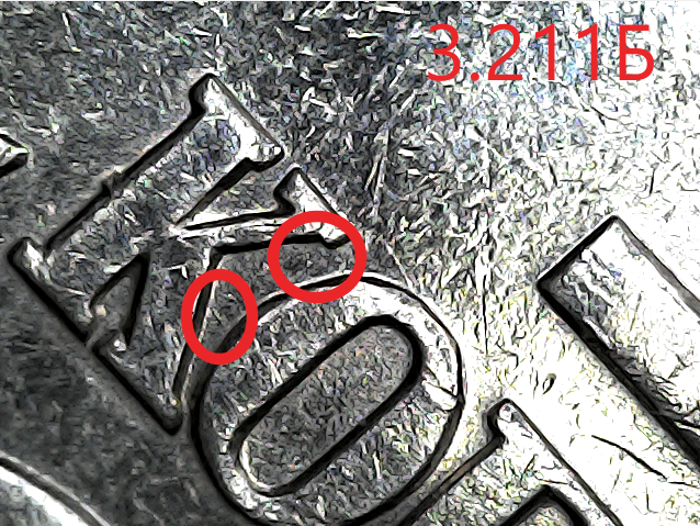 Добрый день. Монета 3.211Б, не понятно какая штемпельная пара. На этой много выкрошек, которые я не видел на других 3.211Б обеих штемпельных пар. Хотелось бы сравнить, может у кого есть экземпляр с такими же выкрошками/линиями шлифовки как на этой, может это ещё одна третья штемпельная пара.