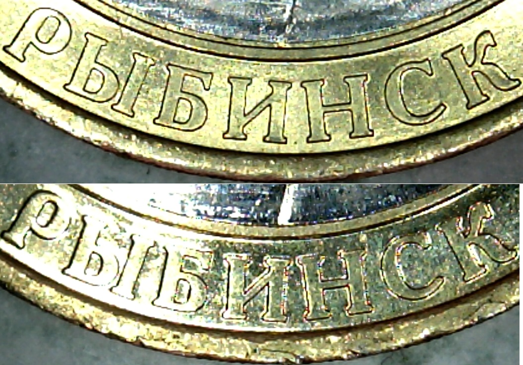 Re: 10 руб Рыбинск, в отношении отверстий в шрифте