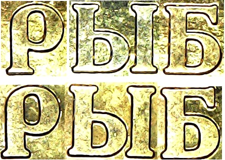 10 руб Рыбинск, в отношении отверстий в шрифте