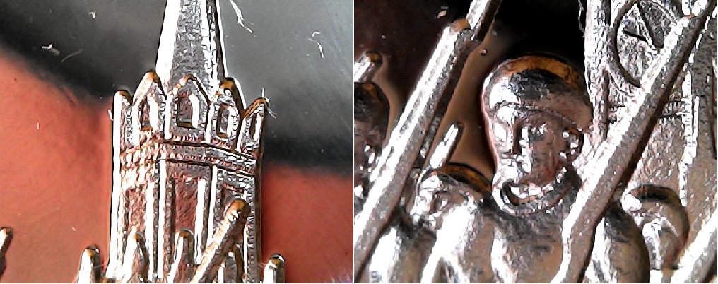 Показываю, смотрите, оценивайте. Не имею другой монеты такого же исполнения и сравнить не с чем. Надписи исполнены другим шрифтом, буквы как бы срезаны под углом. Расстояние от номинала до Б минимальное, а в обычной большое. Покрытие элементов монеты какое-то чешуйчатое. Ну и гурт...имеются какие-то красноватые точки и трещины. При любом вердикте, монета красивая.