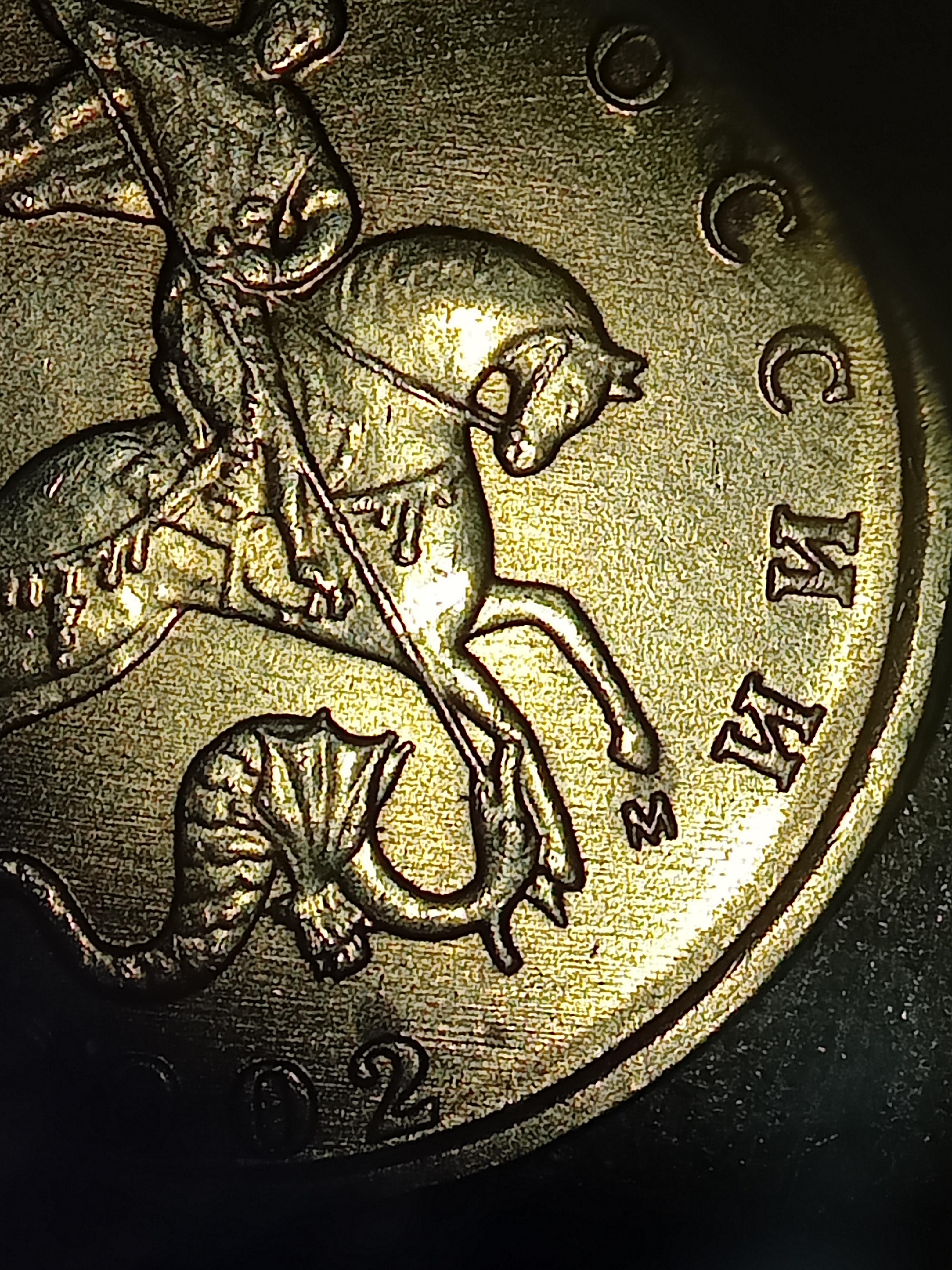 Александр, рельеф и ноги и минтмарки на вопросной монетке ниже. Предлагаю поразмышлять, как изменится видимое расстояние между контурами элементов, если сами элементы стали тоньше.