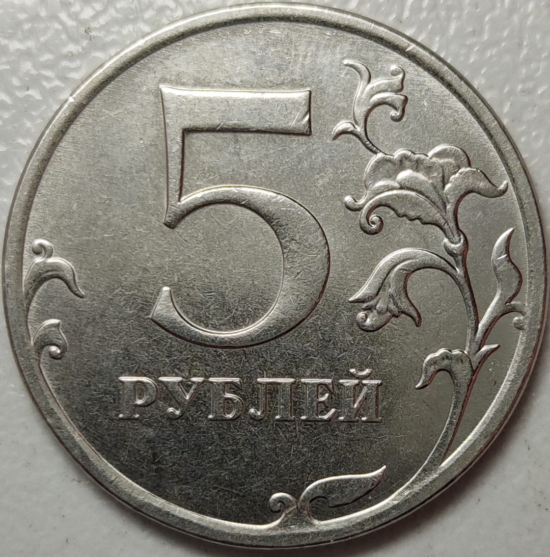 Не перебираю мешки с 5ти рублёвыми монетами, а тут дали на сдачу - с поворотом почти 180 градусов, стал смотреть на разновидность по каталогу, вроде обычная, но на фото в каталоге детали короны не выражены и над короной нижняя часть креста уже - обвел на фото. Это из-за качества чекана такая разница?