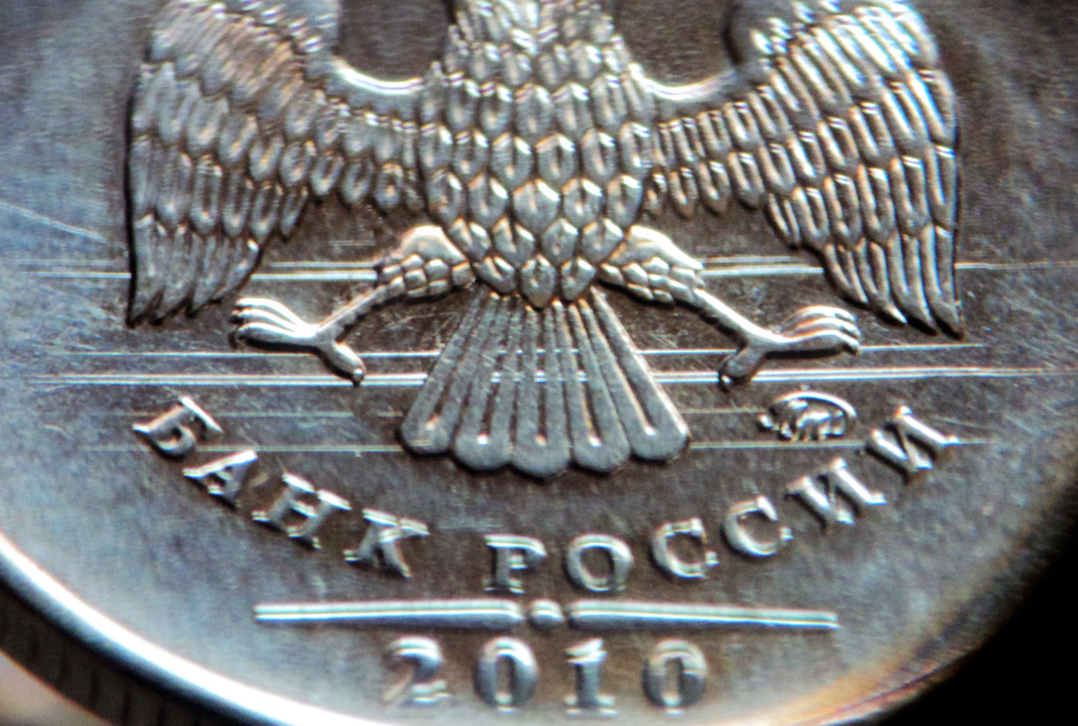 Доброго всем здоровья! Добавлю 2012год... жаль не сохранил монету 2011года с комбинированными царапинами, промежуточными так сказать. Возвращаясь к репродуктивной вертикали, на каком то из этапов негатив, без знака МД, возможно без даты(голый) или без последней цифры, передавал полоски промежуточным позитивам. То есть они проявлялись(царапки) в результате многократного продавливания тонкой стенки и периодической шлифовки штемпеля(негатива). Они похожи на перевёрнутое сердечко, или на … , ну кто во что верит в общем. Можно предположить наличие полосок в 2013году, начало проявления... , свежий промежуточный, относительно первый. Потому как всё свежее уходило в будущие года, наработанная десятилетиями практика