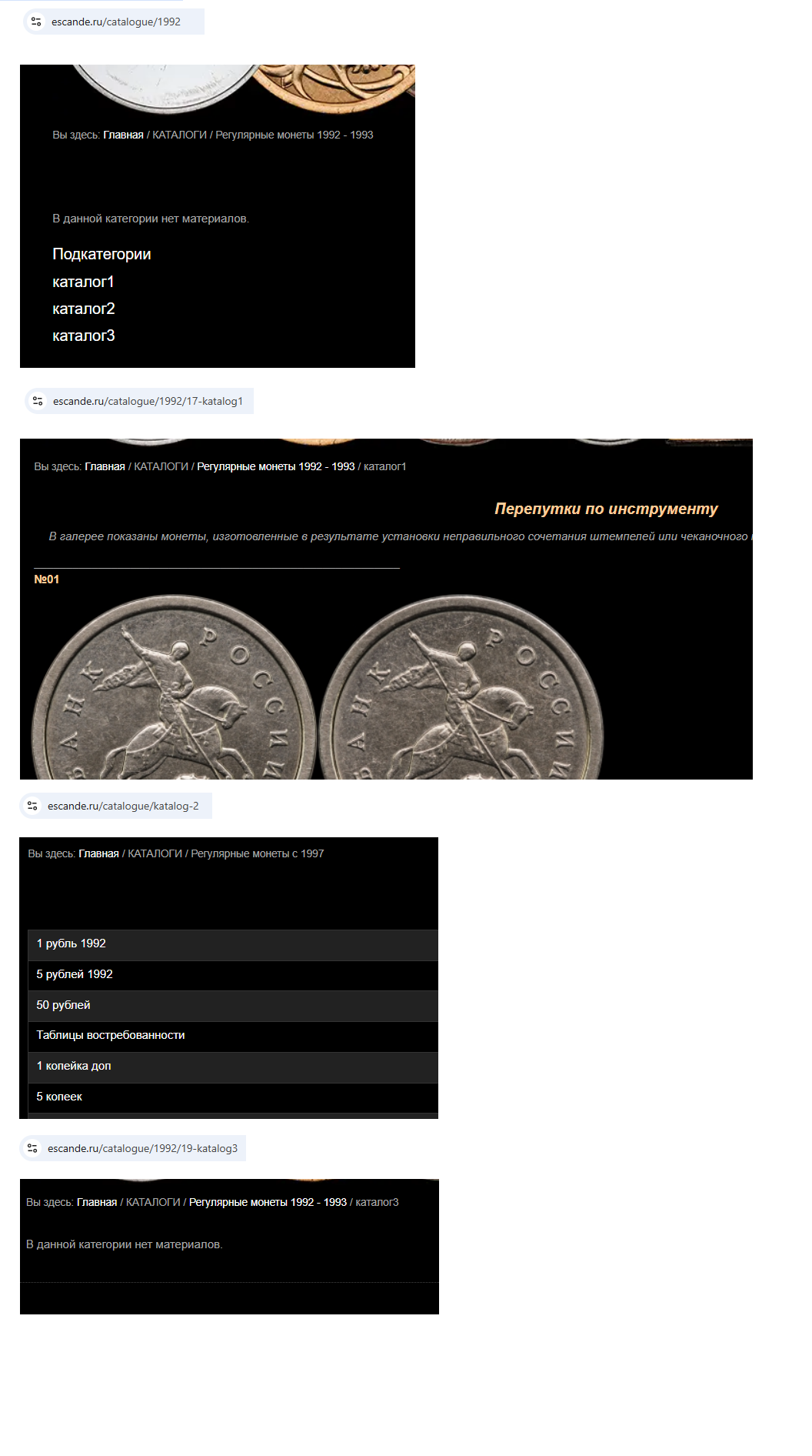 А вот если нажать сразу на "Регулярные монеты 1992 - 1993" (а я привык так пользоваться, не через шапку), то возникает путаница: Со страниц "1 рубль" и т.д. нажать в строке "Регулярные монеты 1992 - 1993", та же путаница.