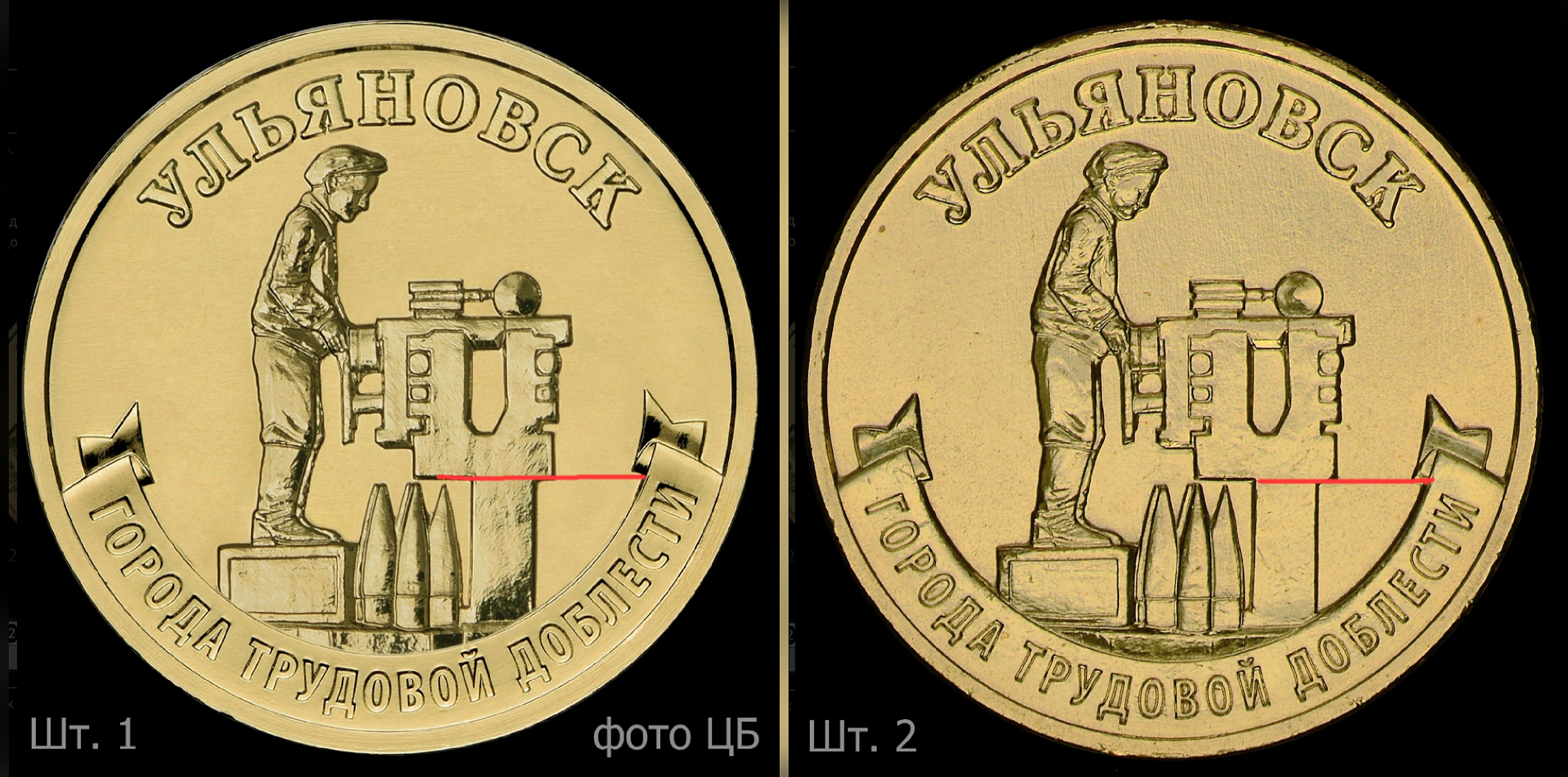 Не замечание - просто уточнение. В юбилейке 25 г - 10 р сталь Ульяновск- в описании 1.1 и 1.2 описан признак смещение надписи ГТД по часовой/ против, по мне более нагляднее было описать что сама лента относительно станка смещена наоборот чем надпись - показал на фото - но прямые линии в моем редакторе не делает - поэтому может чуть кривовато начертил - извините - но смысл думаю понятен. Может кто покрасивей нарисует - тогда совсем хорошо смотрется будет.