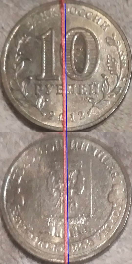для каждого номинала монет на изображении. Первоначально нитку ориентируем по реверсу. По аверсу монету выравнивают в транспортире.