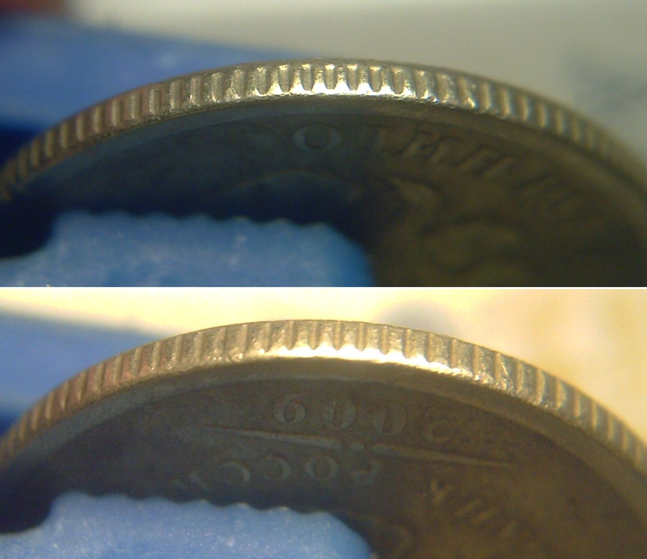 Здравствуйте, уважаемые форумчане! Можно ли отнести гурт на монете 1 рубль 2009М шт. С-3.3 В к третьему типу? На фронтальных фото - аверс сверху. С уважением!