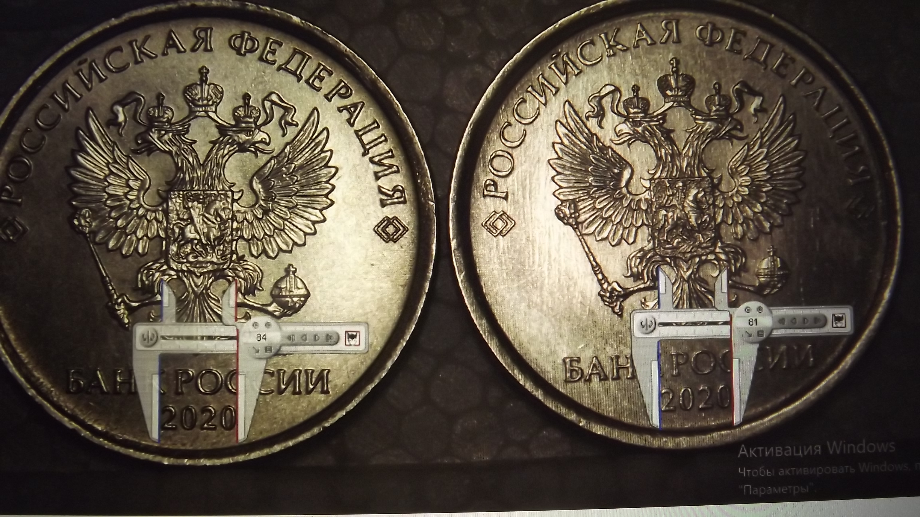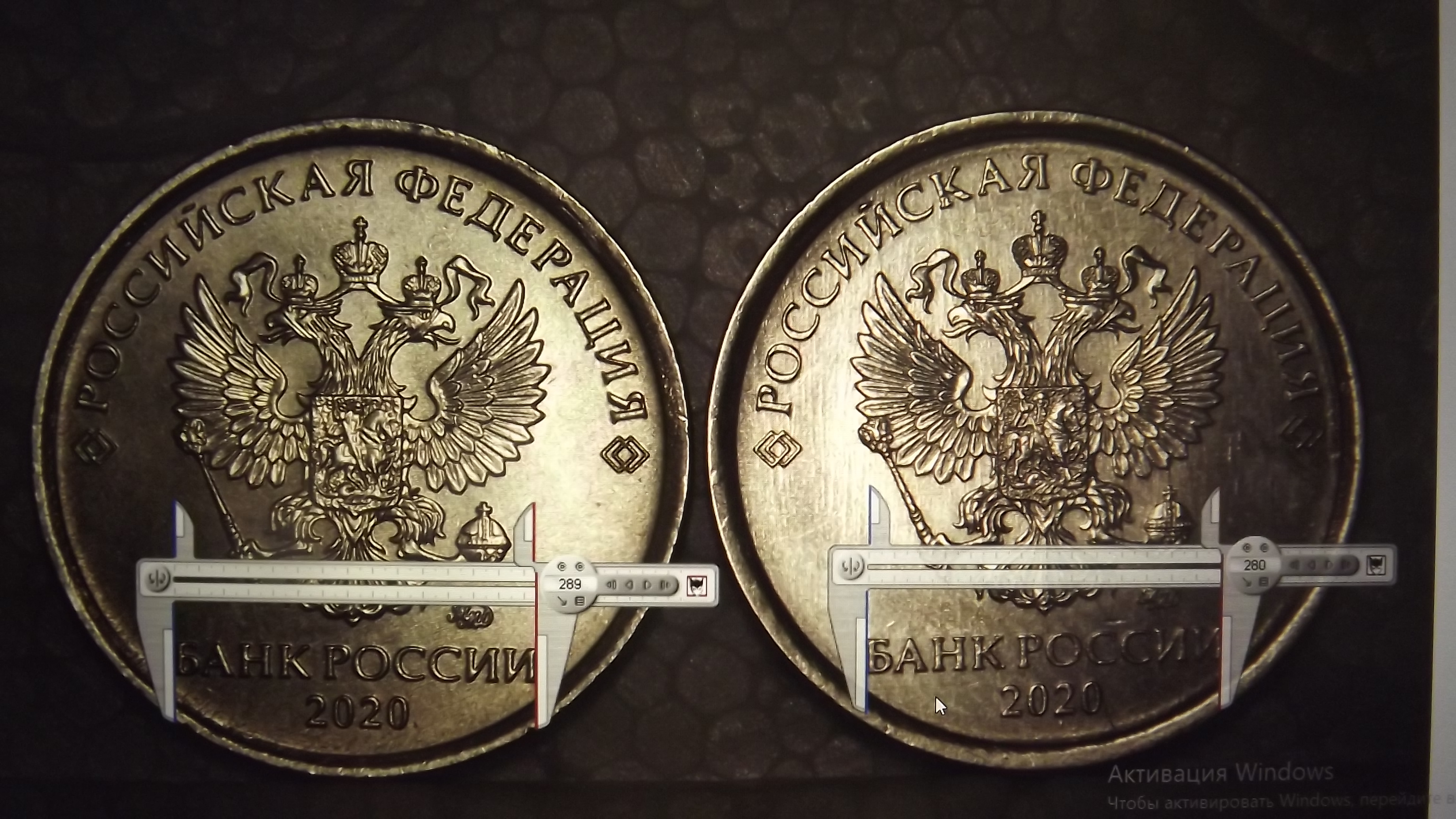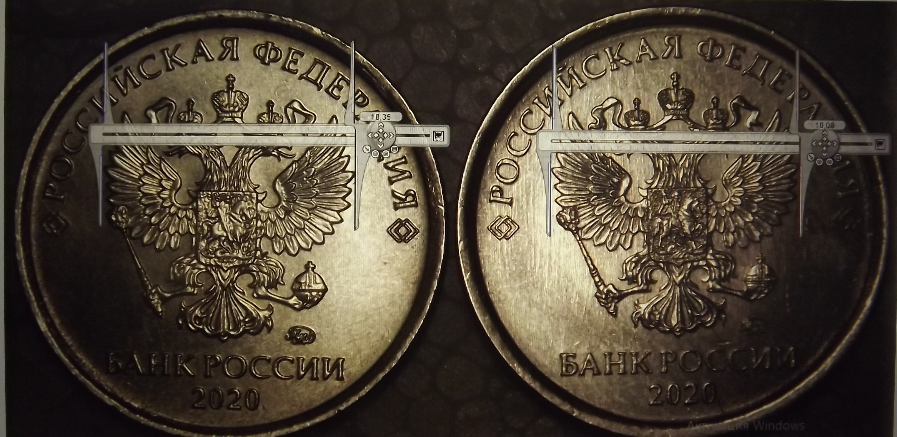 Ширину канта я даже и не трогал, я измерил ширину Орла по по 4-му перу и от хвоста до перекрестия короны, а также ширину " банка России" и и эти измерения дали колоссальную разницу, да это видно просто под лупой и на этих фотках.