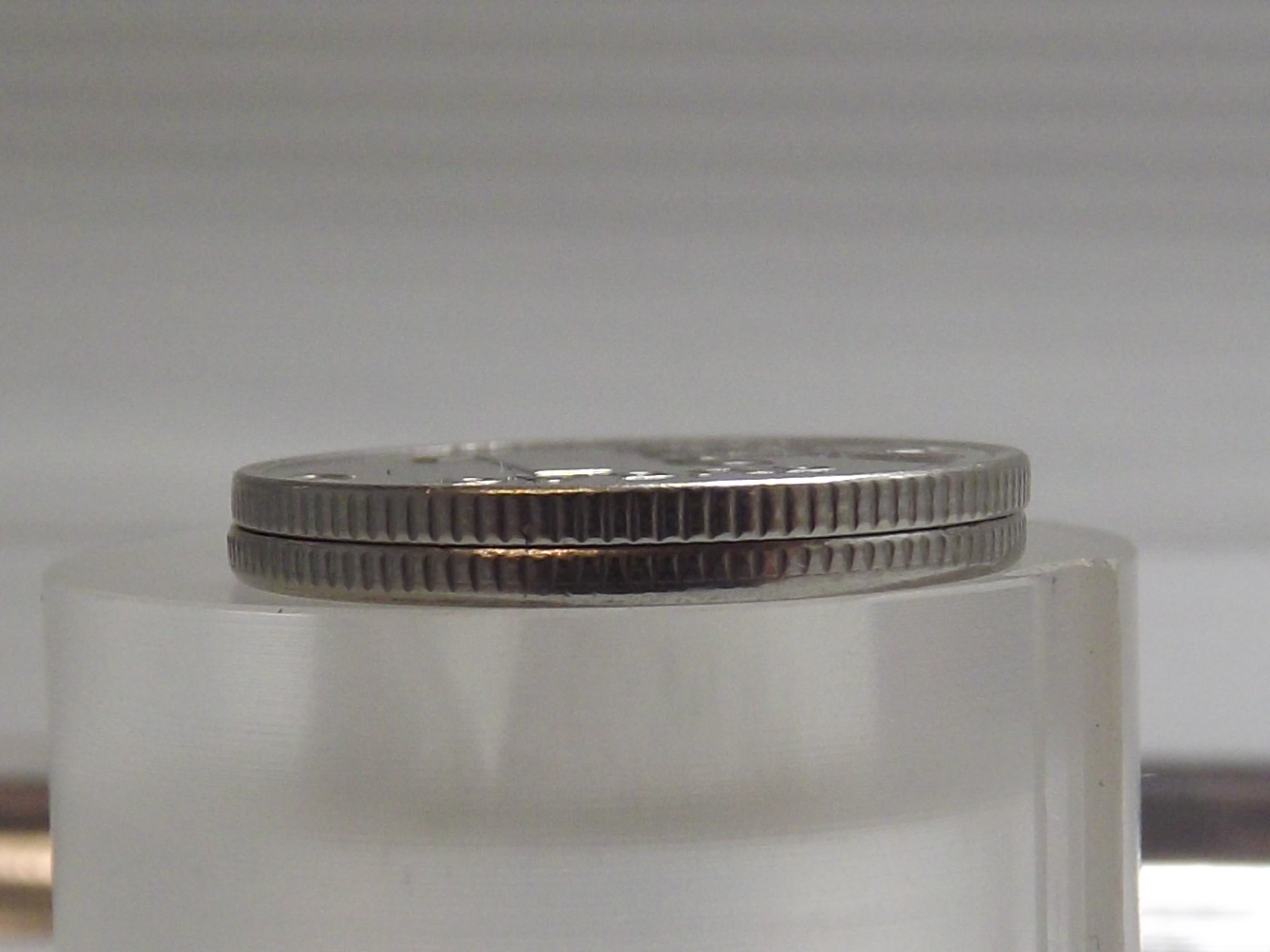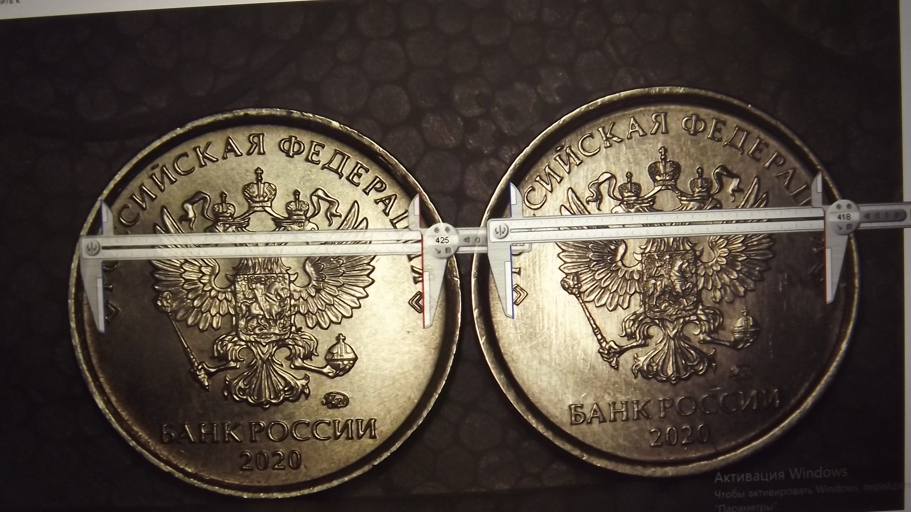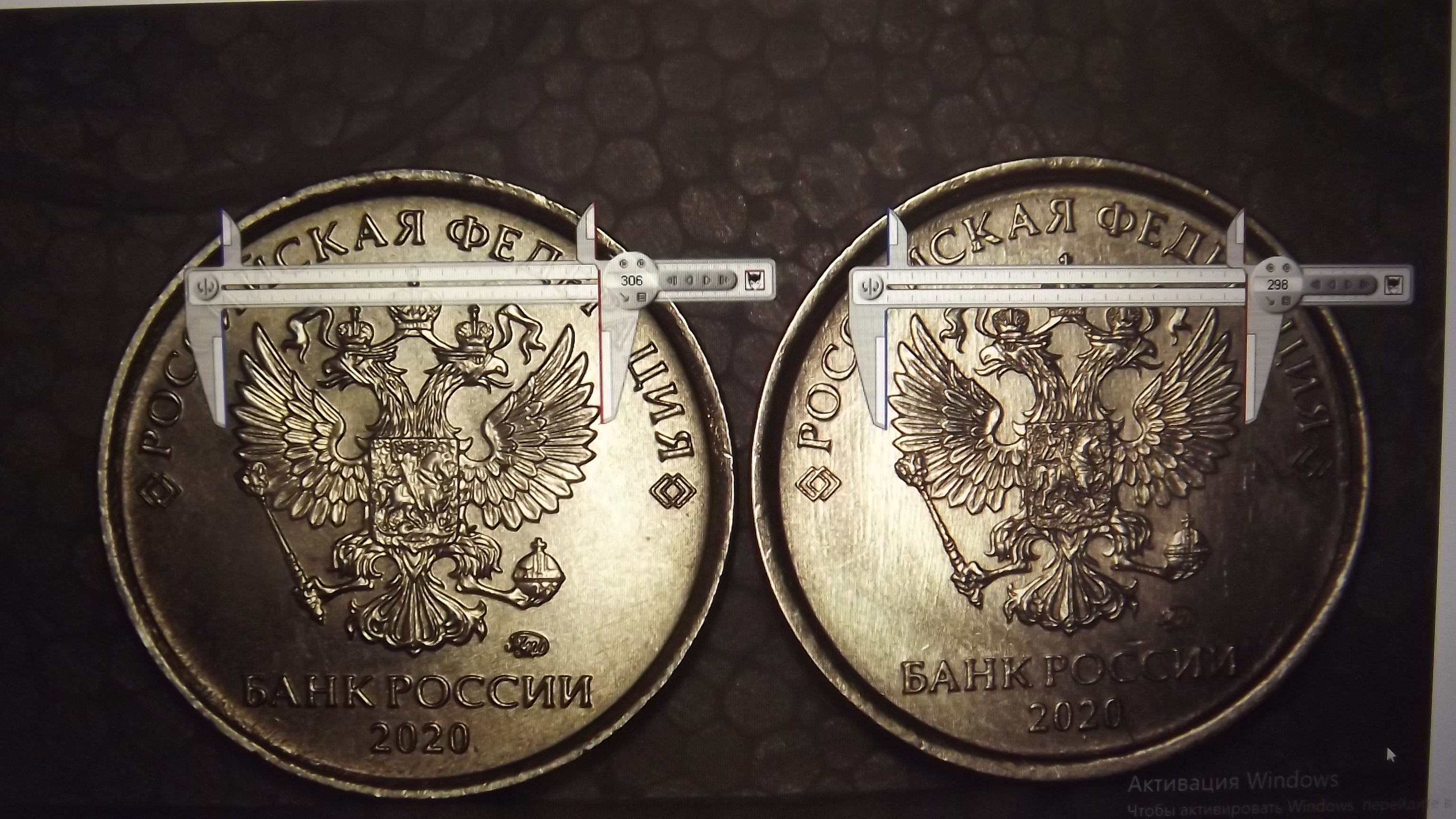 Ширину канта я даже и не трогал, я измерил ширину Орла по по 4-му перу и от хвоста до перекрестия короны, а также ширину " банка России" и и эти измерения дали колоссальную разницу, да это видно просто под лупой и на этих фотках.