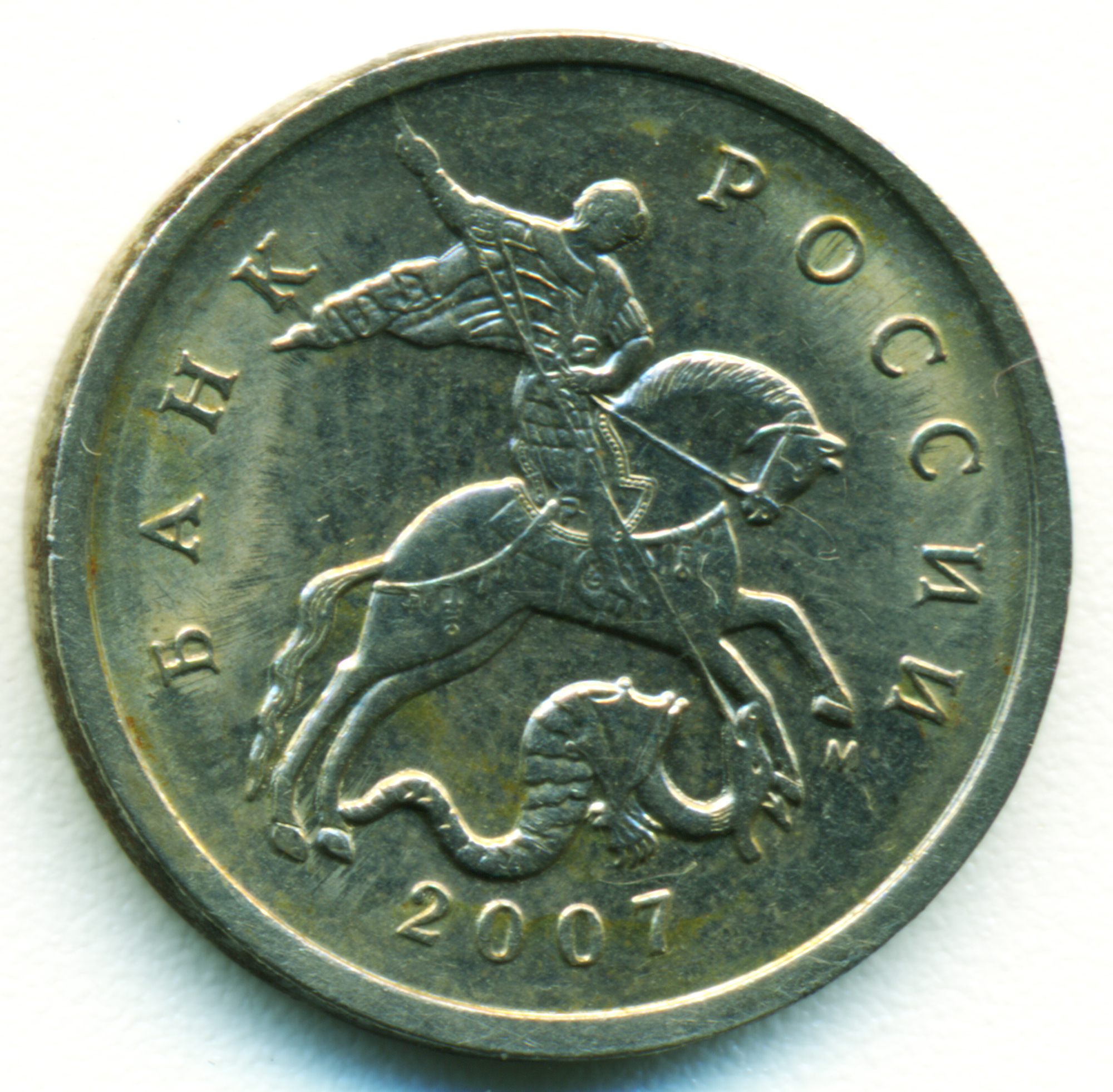 Доброго дня! Прошу совета по монете 5 КОПЕЕК 2007/ М. Как видно, копье упирается в кант. Вопрос, это брак или ...