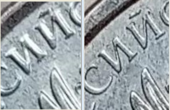 "фишки" ревеса, но надо понимать, что они могут быть как более выраженными при большем износе штемпеля, так и отсутствовать на более ранней стадии чеканки.