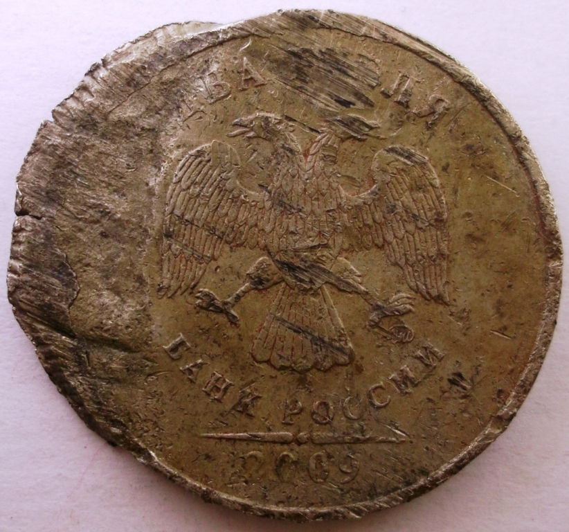 Нашёл в куче мелочи... Это не брак, но меня, как технолога-машиностроителя, всегда занимают вопросы - как сделано? Вот и в этом случае интересно - как такое могли сотворить с монетой? В оборот её отправить стыдно, придётся выбросить, или оставить себе. Может быть у кого-то есть версии о природе повреждения?