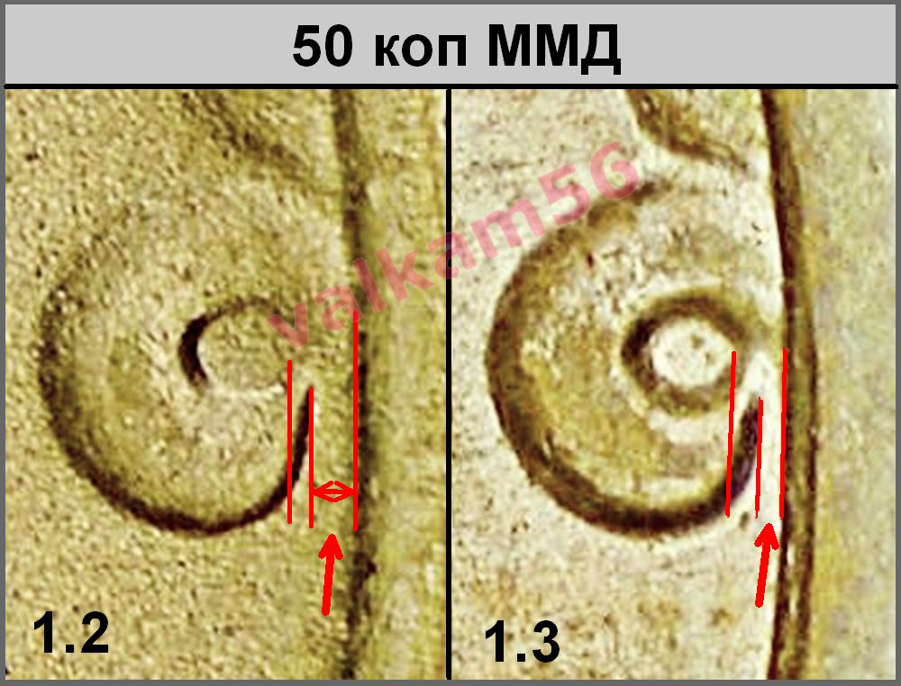 Основное различие шт.1.2. от шт.1.3 в разном размере поля монеты - на шт.1.3 оно меньше чем на шт. 1.2 на 0,9 %.