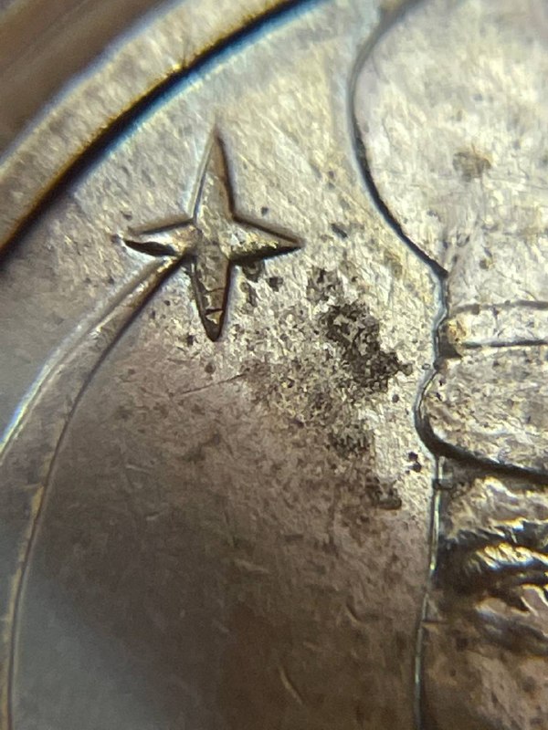 Также на этом реверсе есть линия параллельная канту примерно на 7:30, в левой части верха первой буквы "Г" в подписи "Гагарин". Рассматривать ее лучше перевернув монету на 180 град, т.е. смотреть с 1:30 под углом.