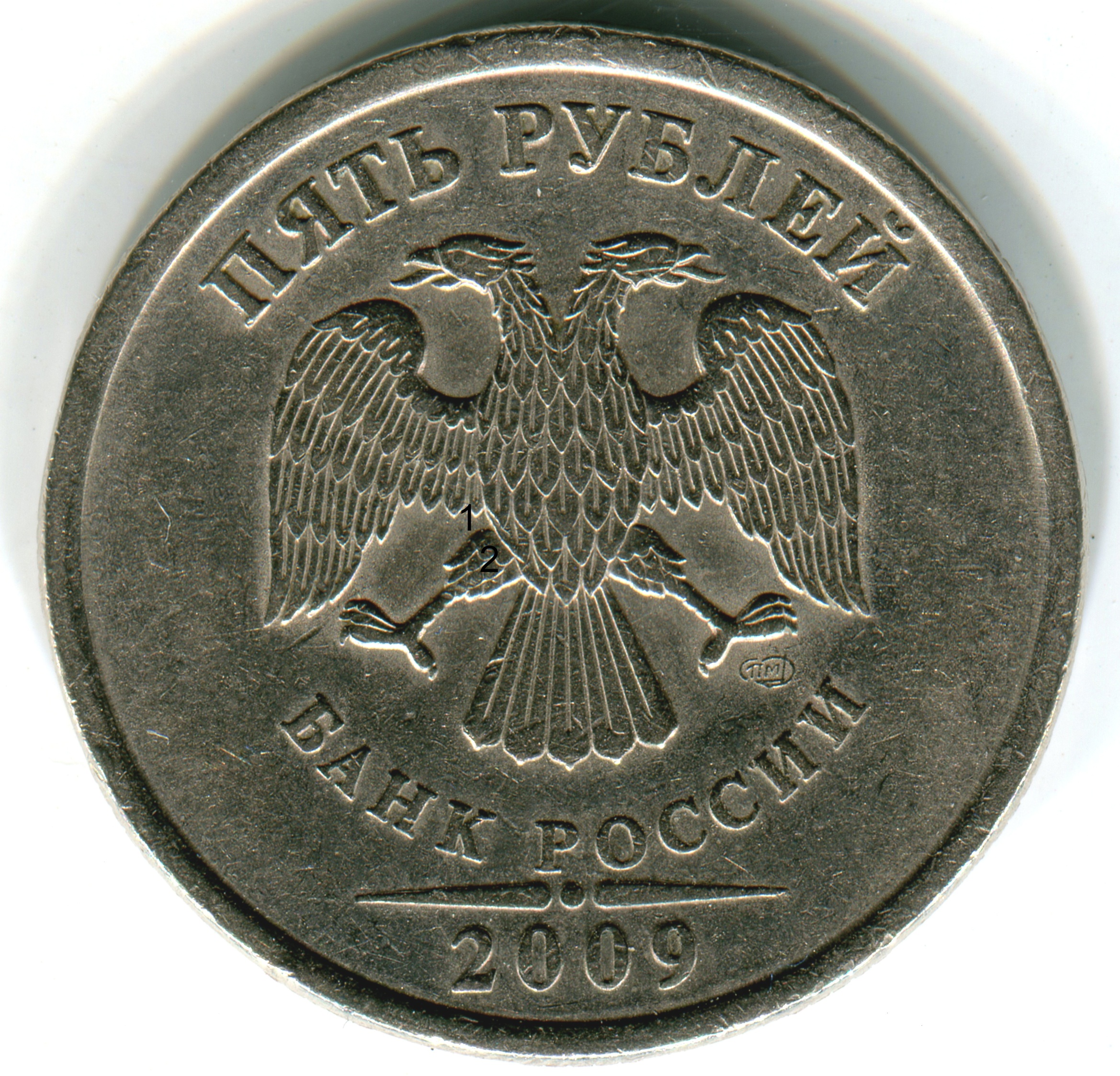Re: 5 рублей 2009 сп немагнит - на аверсе необычное перо у орла