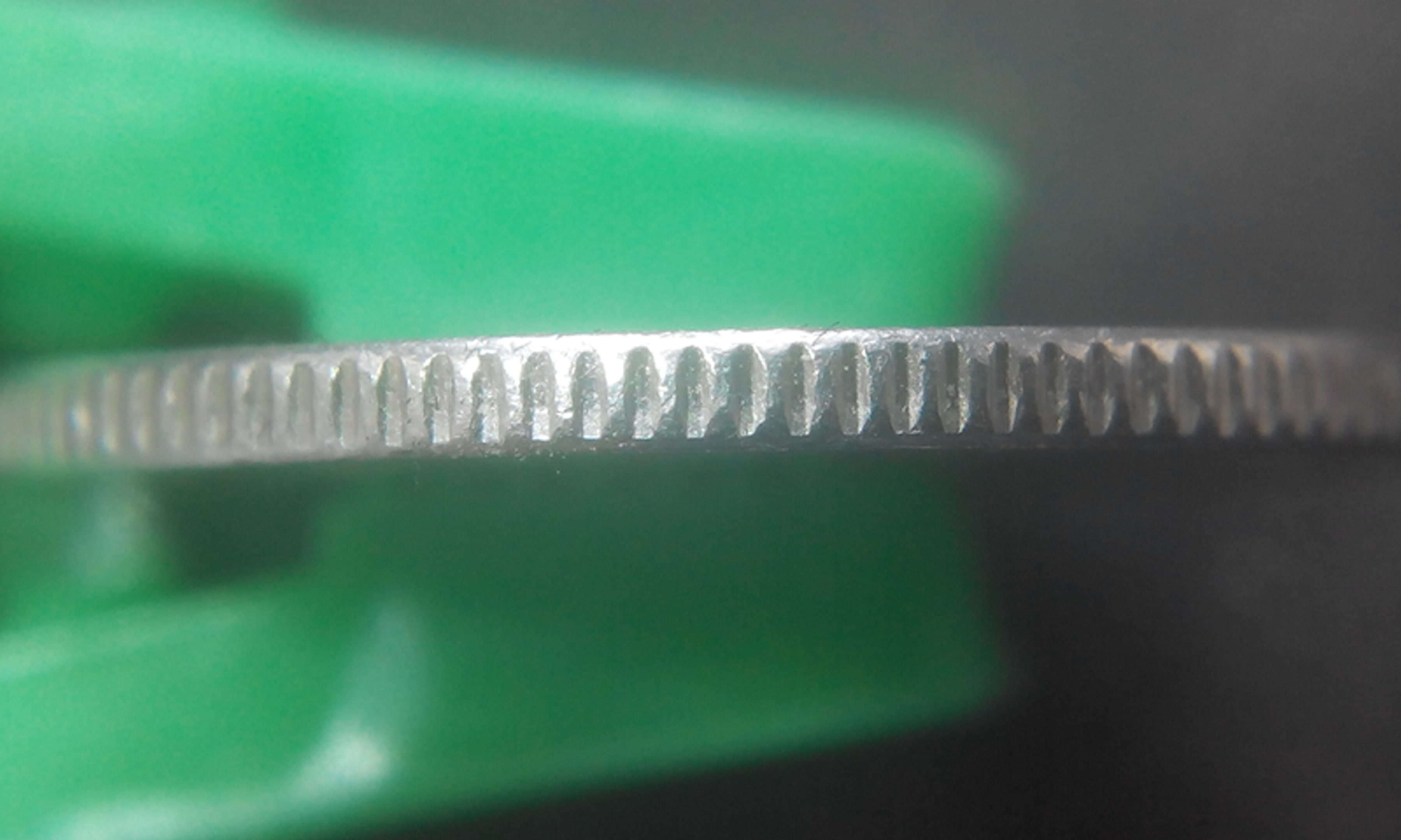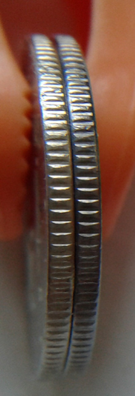 По переходу поля сторон в кант монеты, где "фаска" канта не коснулась штемпеля, видна характерная фактура никелевой гальваники, а на гурте скорее всего такая выработка на чеканочном кольце. По цвету ведь не отличается от обычных?