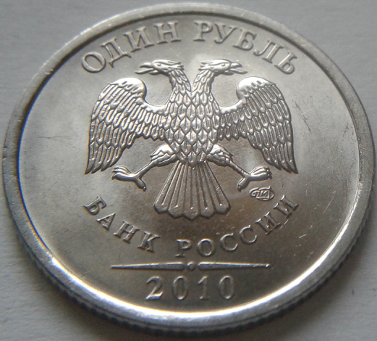 Есть вот такой рубль 2010 года СПМД. Данный рубль с плакировкой из мельхиора МН19 или я ошибаюсь? На фото слева - рубль 2010 года СПМД с никелевым гальванопокрытием, а справа - претендент.