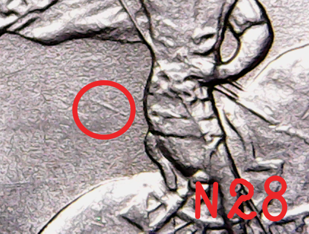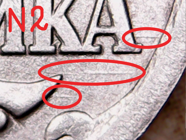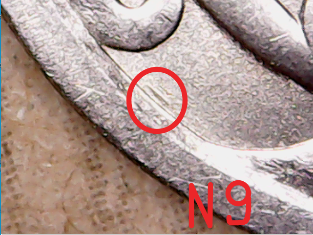 Единственная зацепка, которая видна в разной степени на всех монетах.