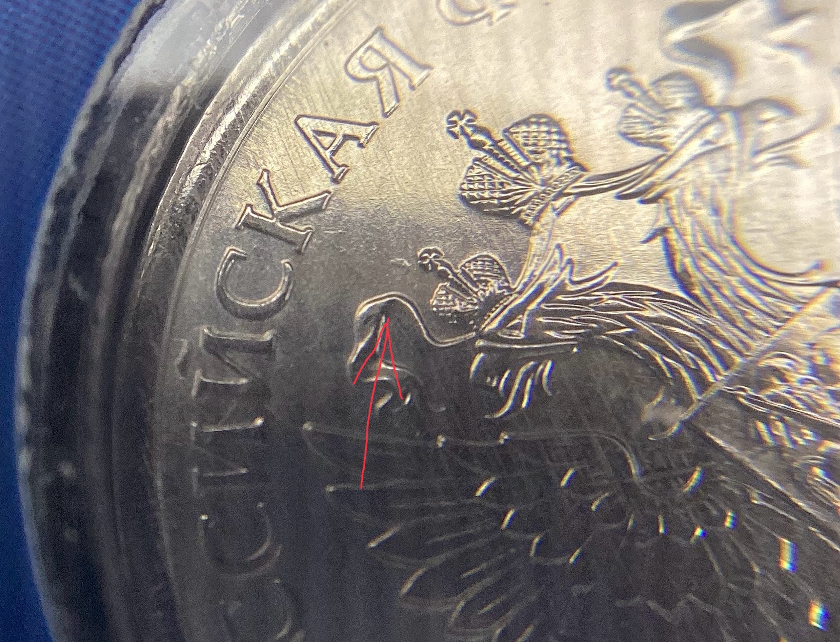 А в моем попался 1 р который знак приспущен и повернут против часовой стрелки. Фото всех показывал в соседней теме.