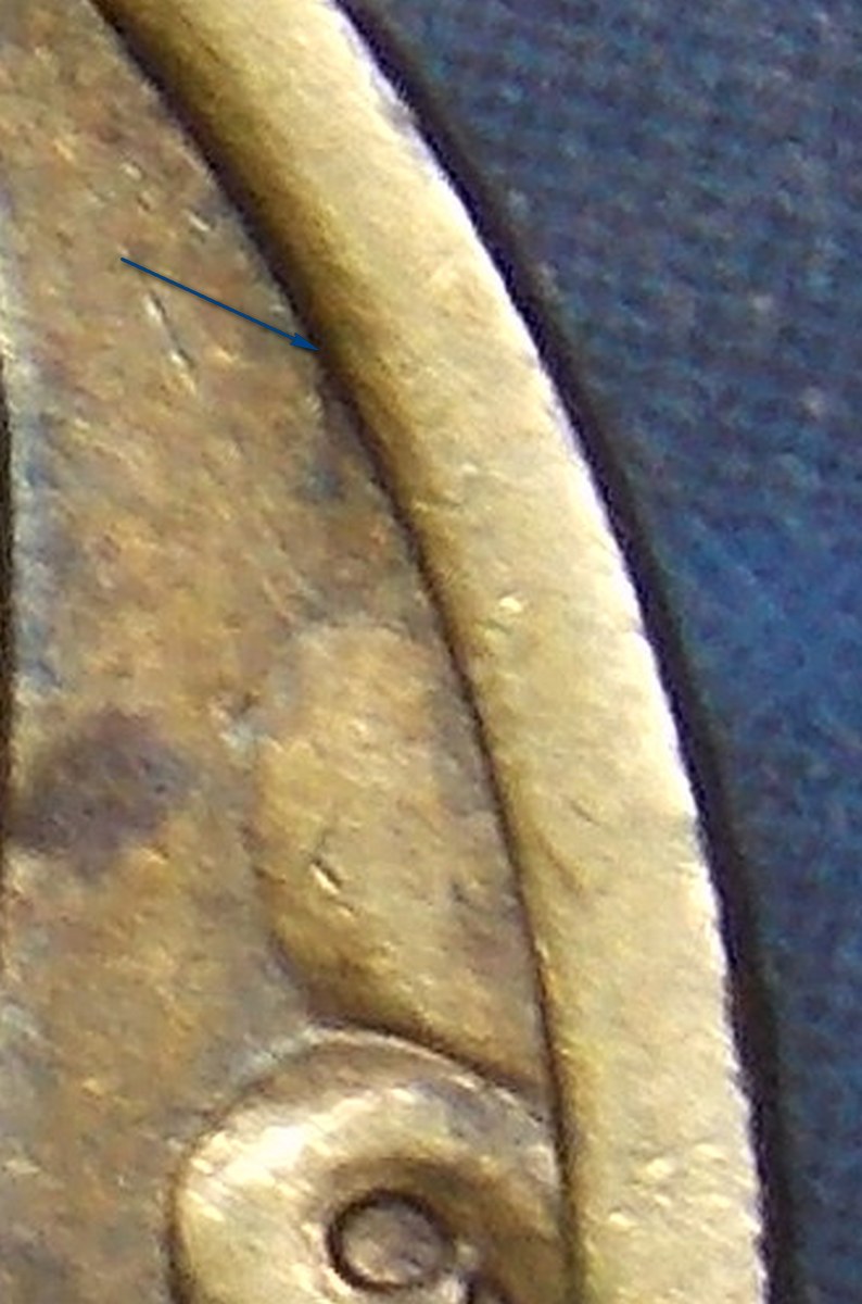 Доброго времени. Шт. 2.322, стебель завитка заходит выше нижней границы завитка, там грязь или окислы, да и заход в кант стебля на 4.30 часов не соответствует 2.321.