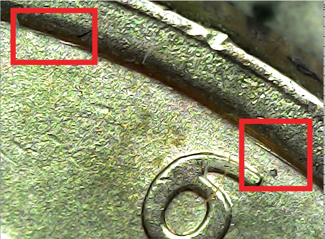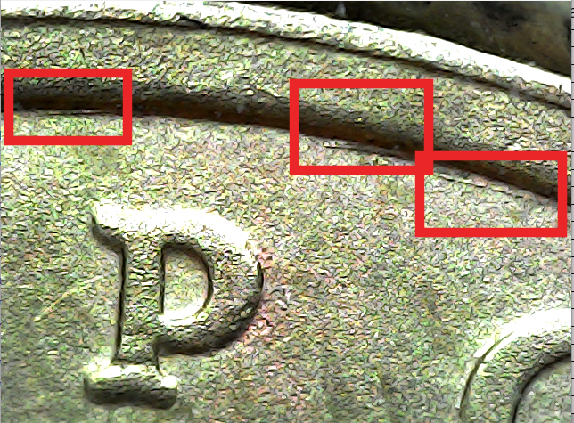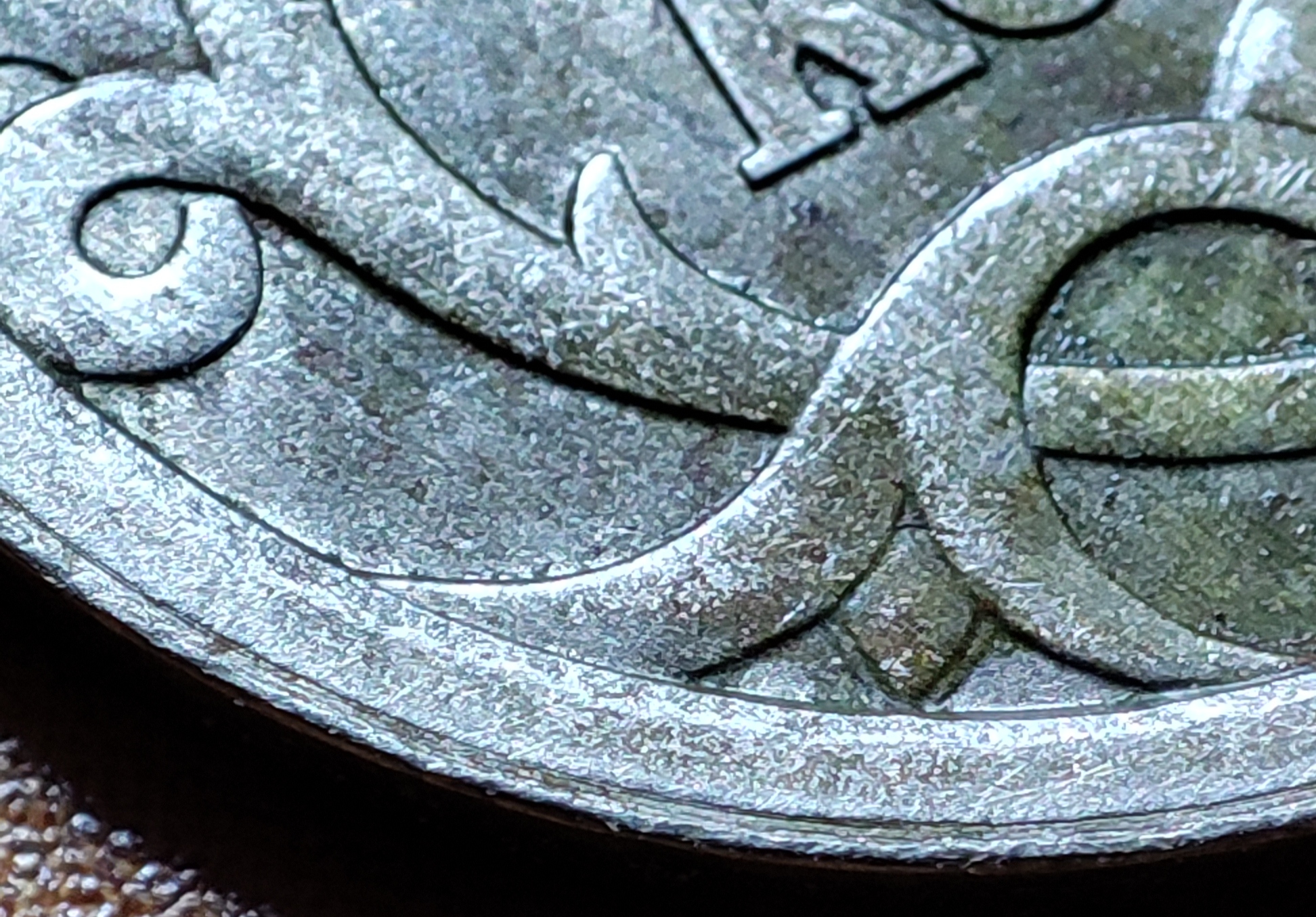 Для тех кто заинтересуется данной монетой хочу добавить ещё более детальные фото шлифовок аверса.
