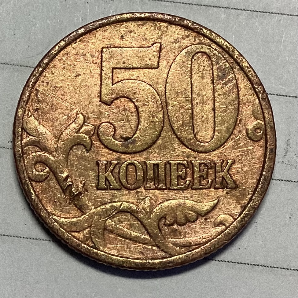 С последних 20 мешков полтинников нашлась 31 монета 50-99СП, с подобной ступенькой только одна, но ступенька разомкнута в нижней части. Сохран не позволяет увидеть даже точки на бутоне, не то что штрихи показанные Андреем.